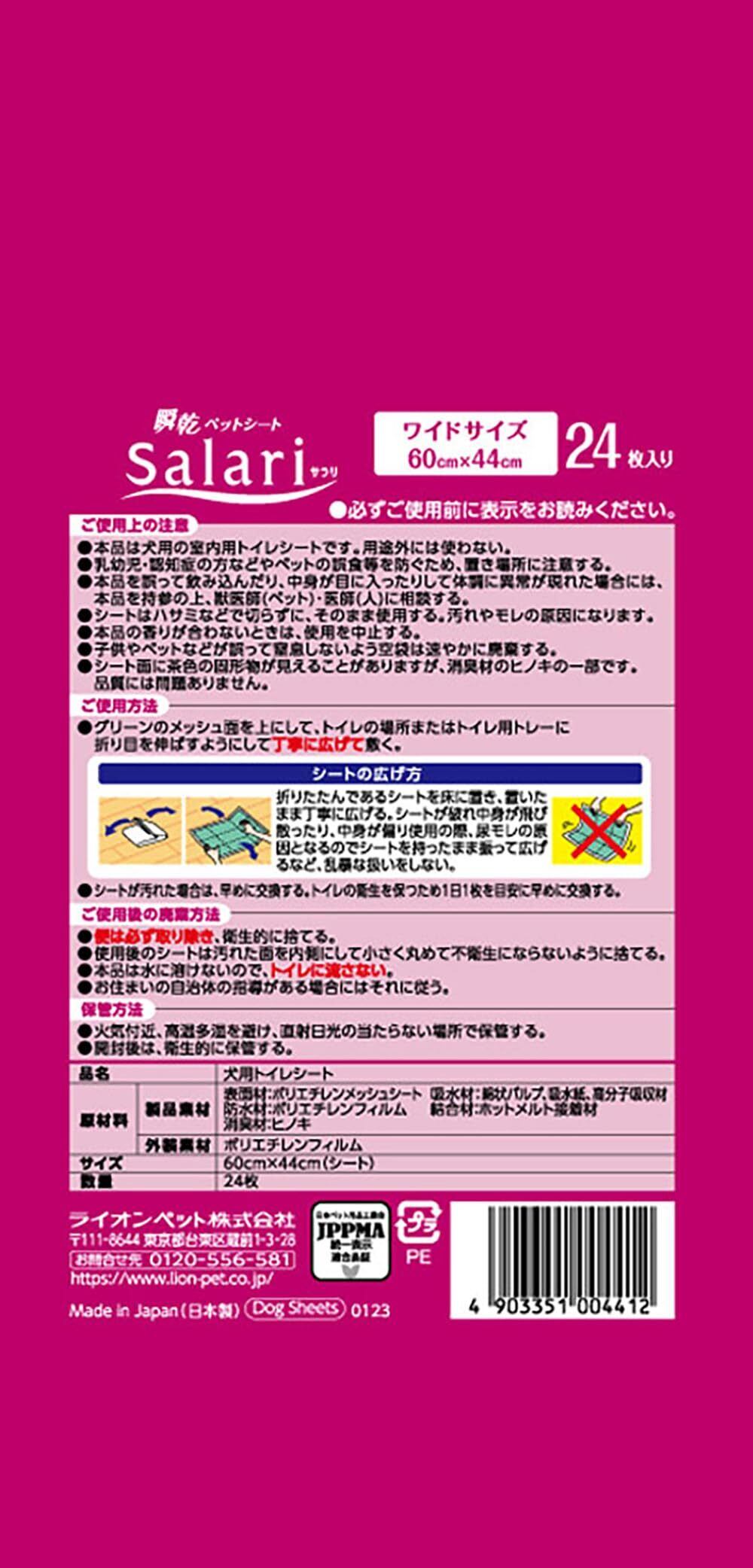 サラリ (Salari) 瞬乾ペットシート ワイド 24枚入×6個 (ケース販売)