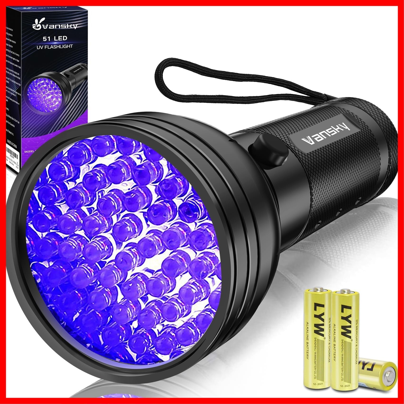 Vansky ブラックライト UV 懐中電灯、51 LED ブラックライト ペット尿探知機 犬/猫の尿、乾燥した汚れ、トコジラミ (電池が含まれています)