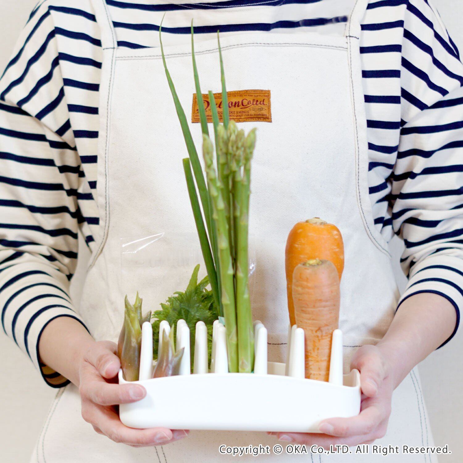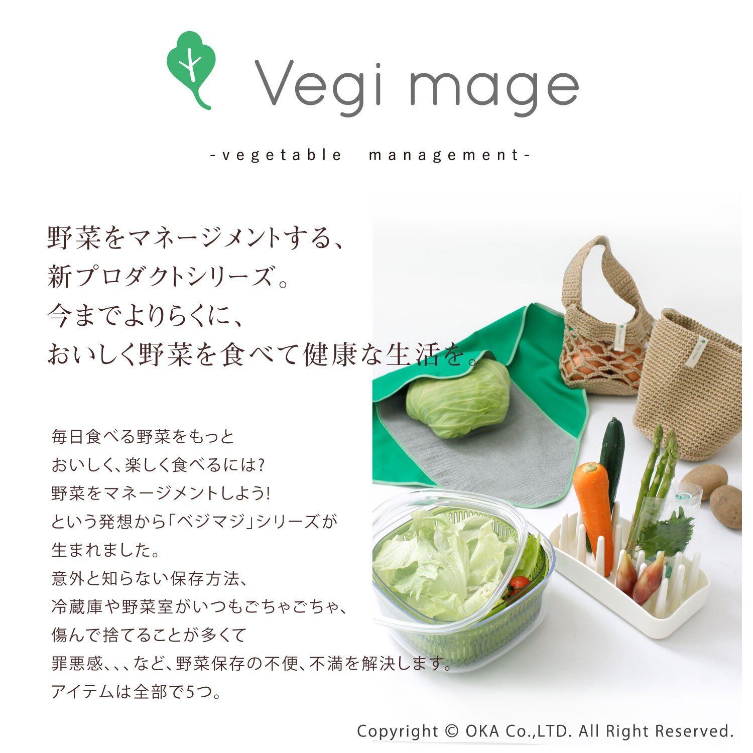 野菜を実っている状態で保存できる、Vegi mage (ベジマジ)「たてる」。野菜をマネージメントする、新プロダクトシリーズのひとつ。今までよりらくに、おいしく野菜を食べて健康な生活を。毎日食べる野菜をもっとおいしく、楽しく食べるには?野菜をマネージメントしよう!という発想から「ベジマジ」シリーズが生まれました。立てることで冷蔵庫や野菜室がスッキリ片付き、どんな野菜があるか、鮮度などがすぐに分かります。太い野菜も、細い野菜も立てられる2つのパーツに分かれています。そのまま調理台に出して、使うことができます。食器洗浄機や食器乾燥機で洗えます。