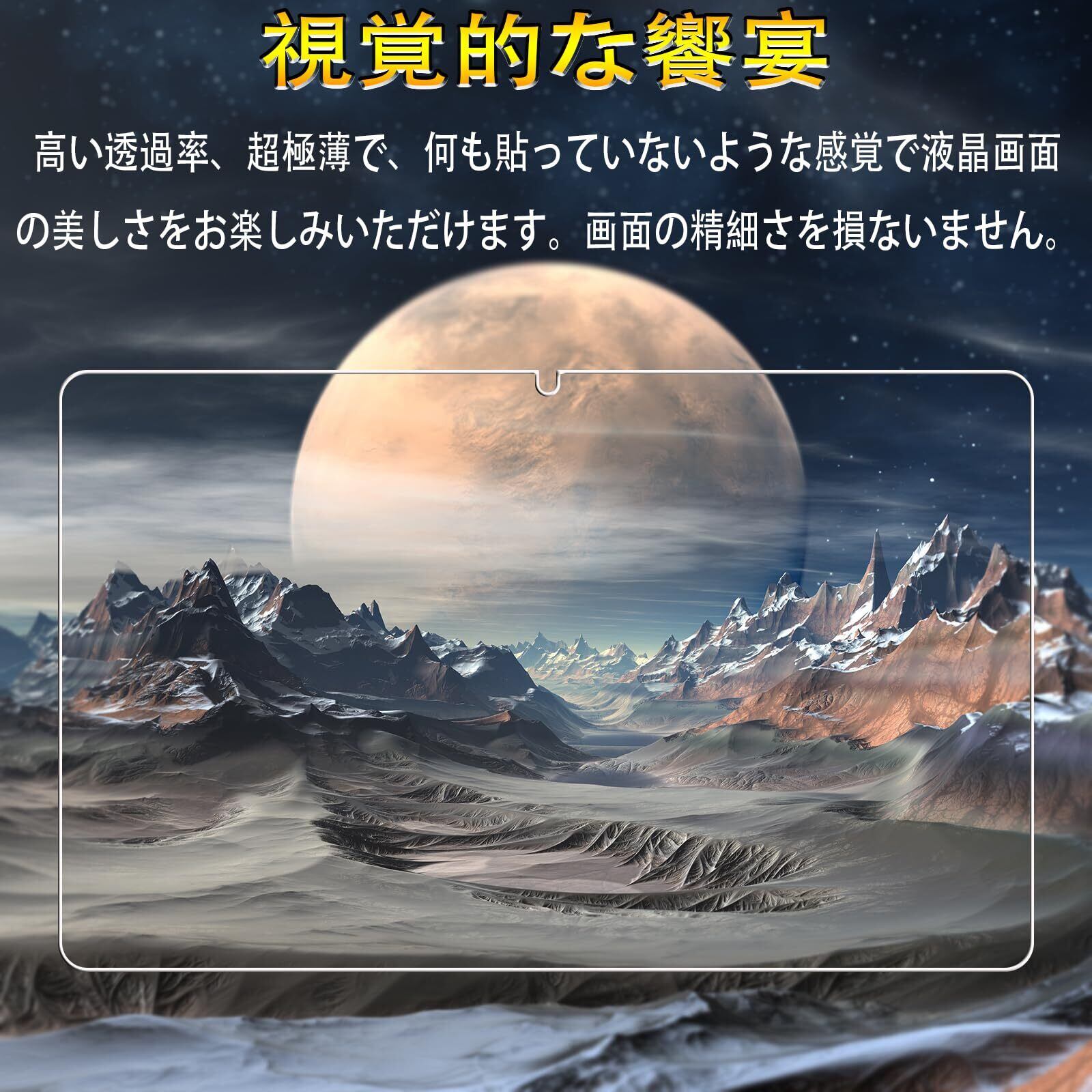 【高透過率】透過率高 超えのガラスフィルムで、液晶画面の鮮明度を損なうことなく、画面本来の美しさをそのまま表現します。高透明度 ガラスフィルムで、貼っても貼っていないようなクリア感。タブレットの液晶本来の美しさを損わない、絶妙な画面感を実現します。
