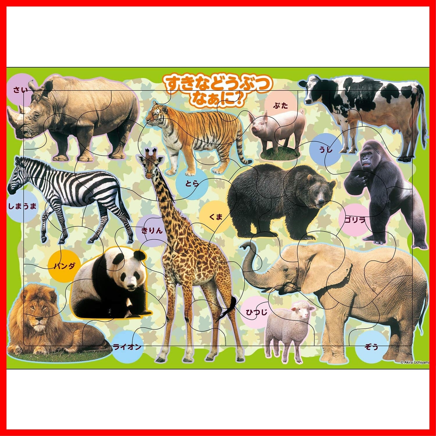 人気の動物が12種類掲載されたパズルです。