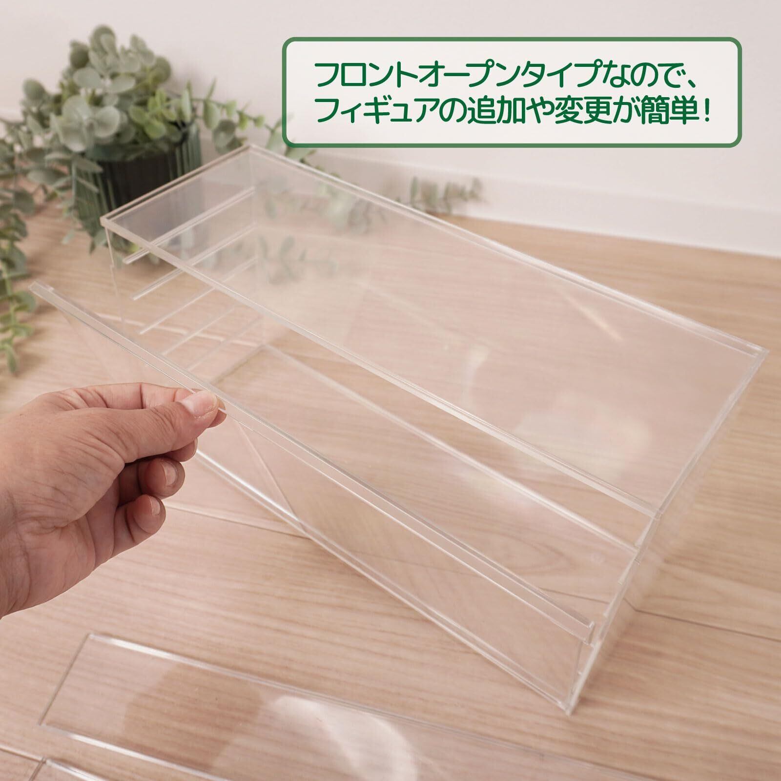 フロントオープンタイプなので、フィギュアの追加や変更が簡単、倒れてもさっと起こせます。