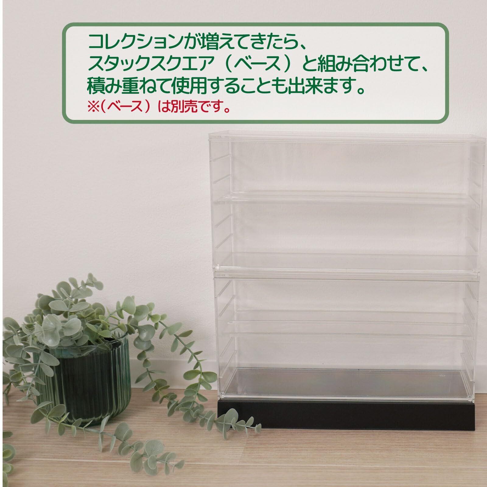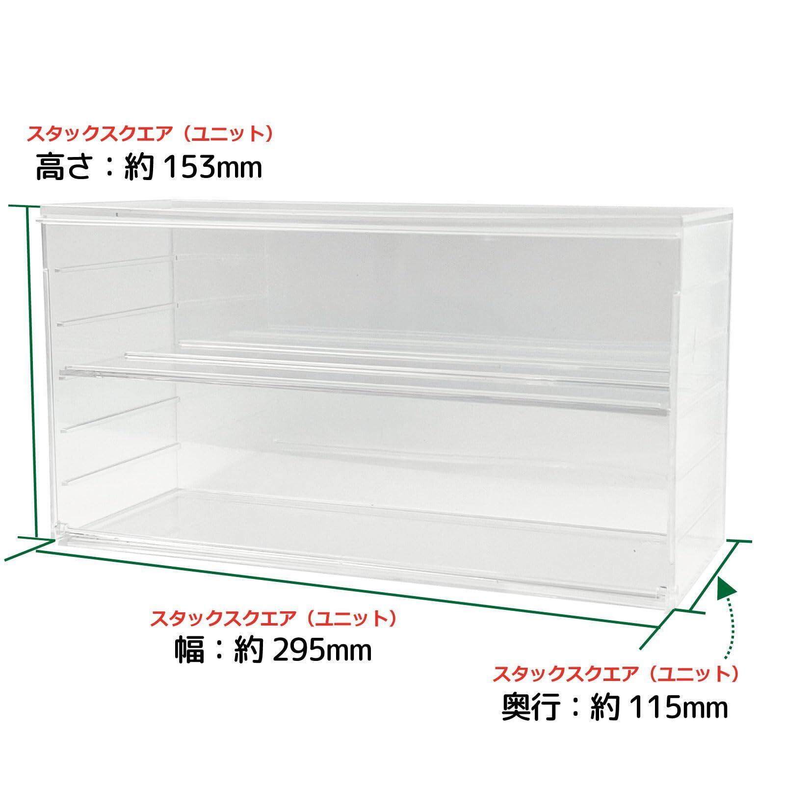 シンコハンガー(Shinkohanger) フィギュア ディスプレイケース スタックスクエア ユニット クリア 日本製 増設用 横型 人形 トミカ アニア ガチャガチャ ガチャポン コレクション トレー 位置調節 取り外し 可能 収納ボックス ディスプレイボックス 前開き 透明 166482