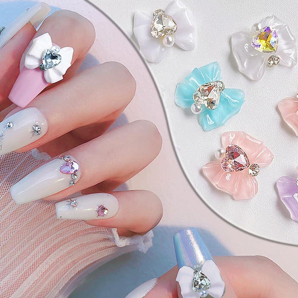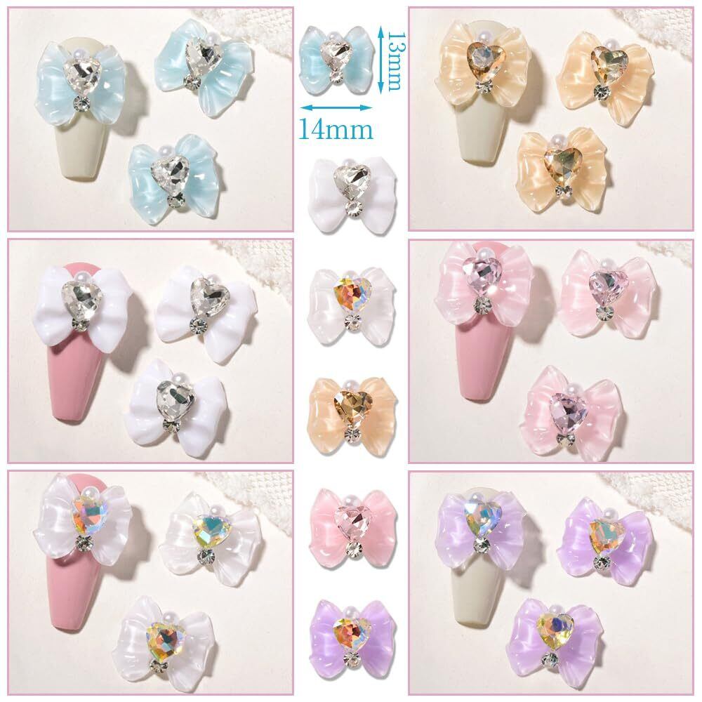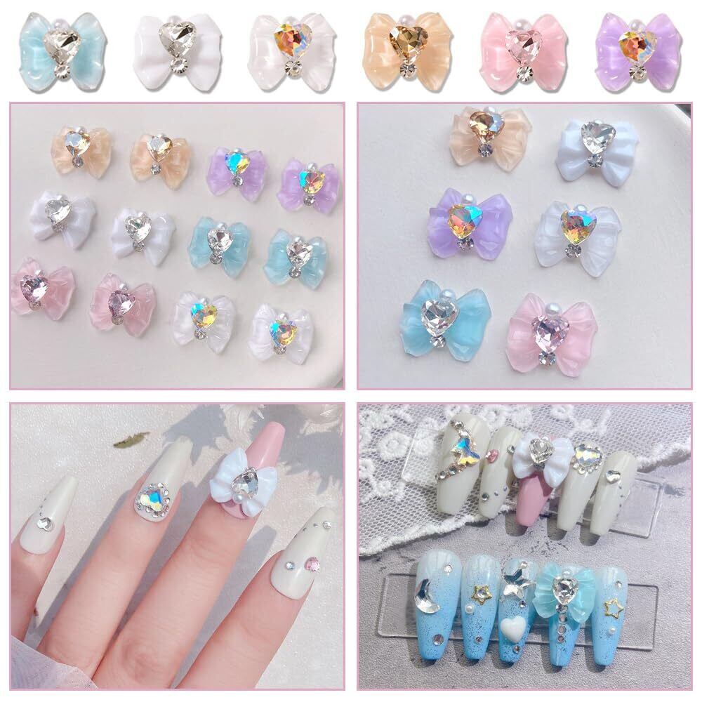 LOYELEY ネイルパーツ リボン 約30個セット 6色 蝶結び リボン キラキラ 可愛い 大きい ストーン 3d 立体 パール パーツ ハート ネイルアート 手芸 ハンドメイド デコパーツ ジュエリーパーツ レジン デコパーツ ラインストーン デコ用