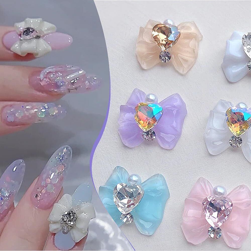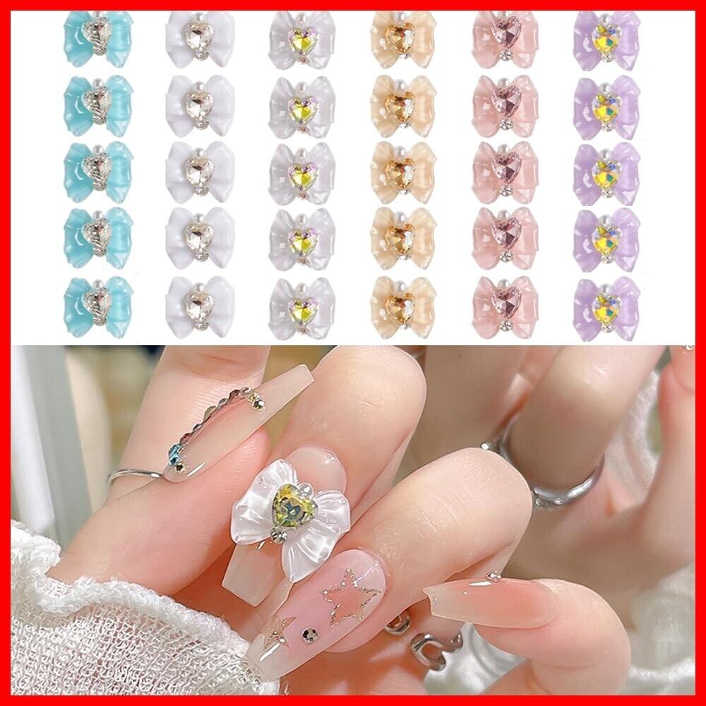LOYELEY ネイルパーツ リボン 約30個セット 6色 蝶結び リボン キラキラ 可愛い 大きい ストーン 3d 立体 パール パーツ ハート ネイルアート 手芸 ハンドメイド デコパーツ ジュエリーパーツ レジン デコパーツ ラインストーン デコ用 | hananoki