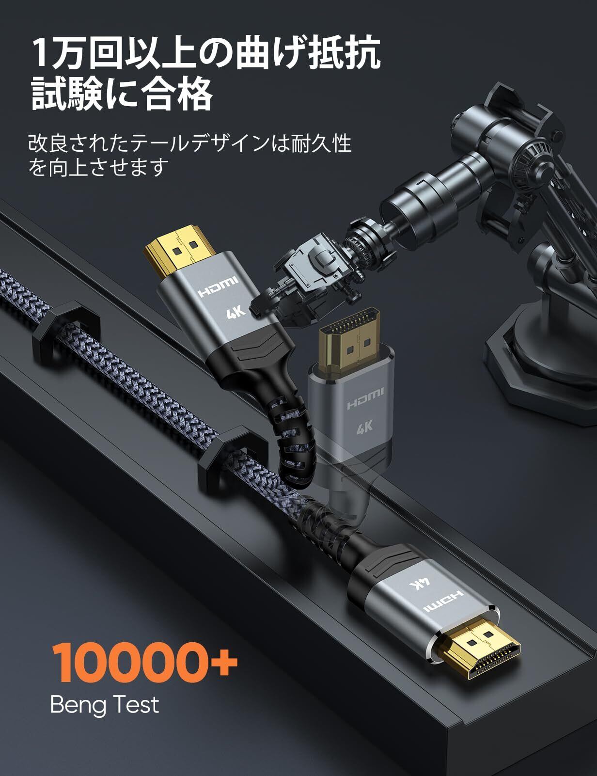 【HDMI Ver2.0基準】このHDMI ケーブルはHDMIVer2.0基準に適合(60Hzで4K対応、2160p、色深度48bit/px)。最大帯域幅18Gbpsまでサポート。hdmi Ver1.4などの旧バージョンとの互換性有ります。