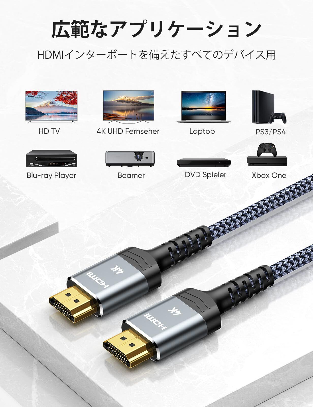 【多様な出力対応】HDMI ケーブルは TV 4K, ブルーレイプレーヤー,テレビやモニターとパソコン、レコーダー・プレイヤー、AVアンプ、ゲーム機などを接続するにおすすめするHDMI-HDMIケーブルです。