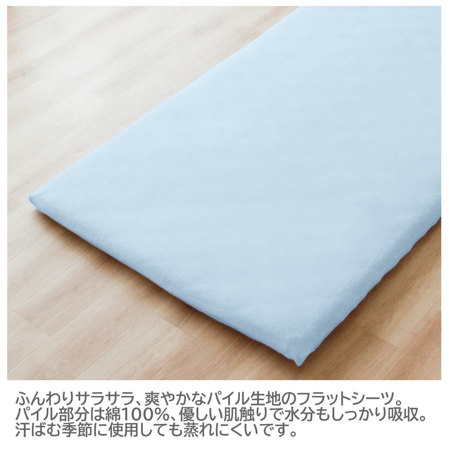ふんわりサラサラ、爽やかなパイル生地のフラットシーツ。パイル部分は綿100%、優しい肌触りで水分もしっかり吸収、オールシーズン使用できますが 汗ばむ季節には特におススメです。