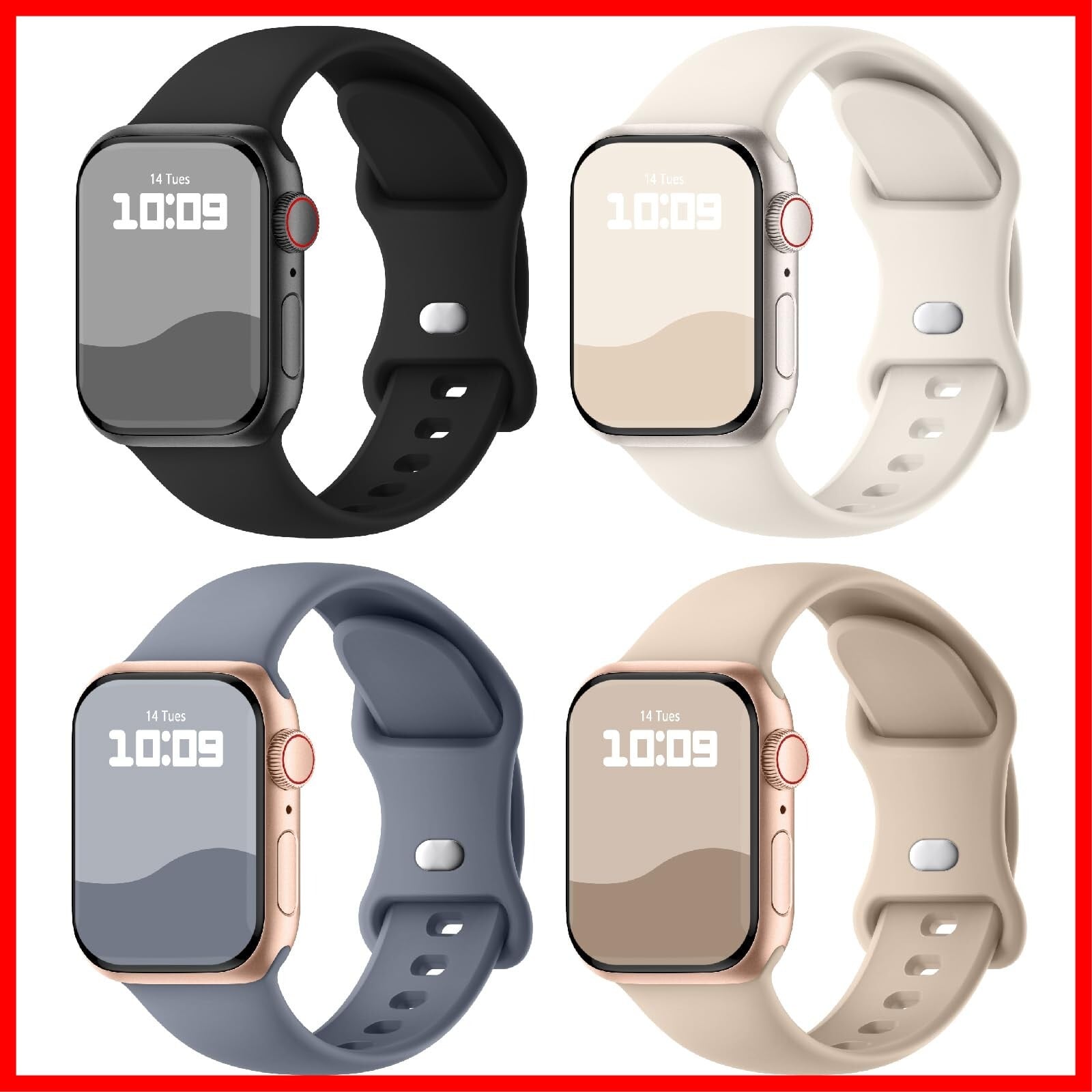 【4枚入り】Knossen コンパチブル Apple Watch バンド 38mm 40mm 41mm 42mm 44mm 45mm 46mm 49mmアップルウォッチ バンド シリコン製 スポーツバンド iWatch Series 10 9 8 7 6 5 4 3 2 1 SE に対応 シリコン製 スポーツバンド 交換ベルト 柔らかい 通気 男性 レディース