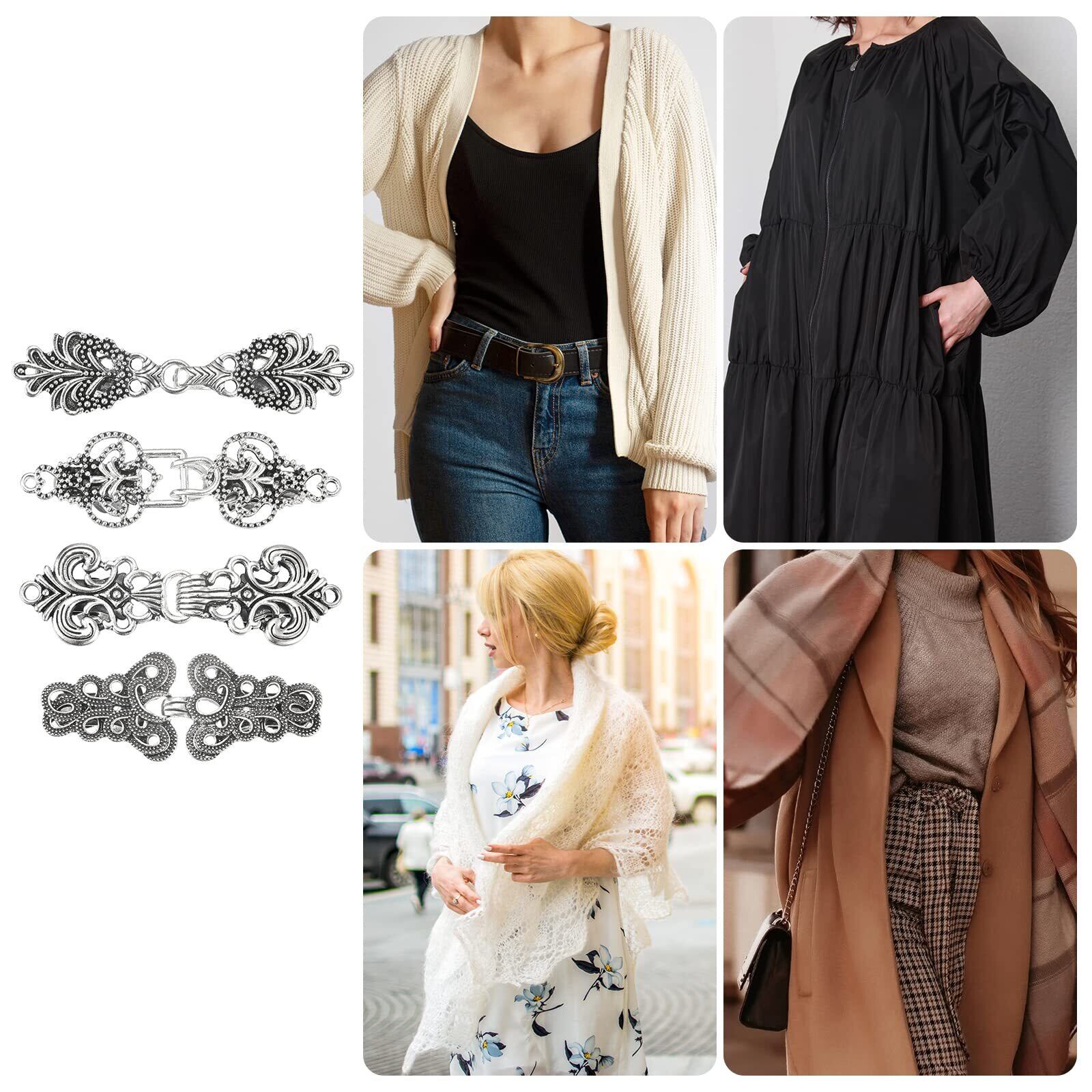 セータークリップセット: パッケージには、さまざまなスタイルのシルバーヴィンテージセータークリップ4個が含まれており、ドレッシングのさまざまなニーズを満たすことができます。