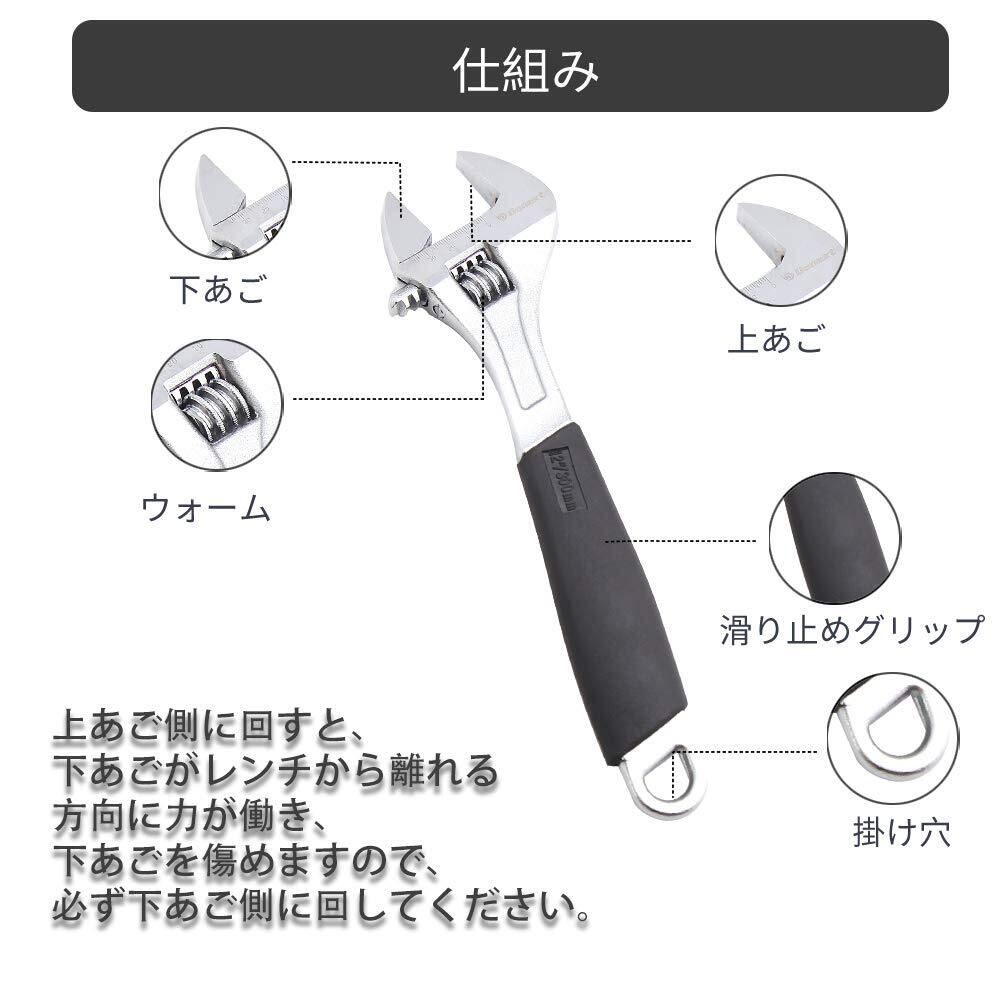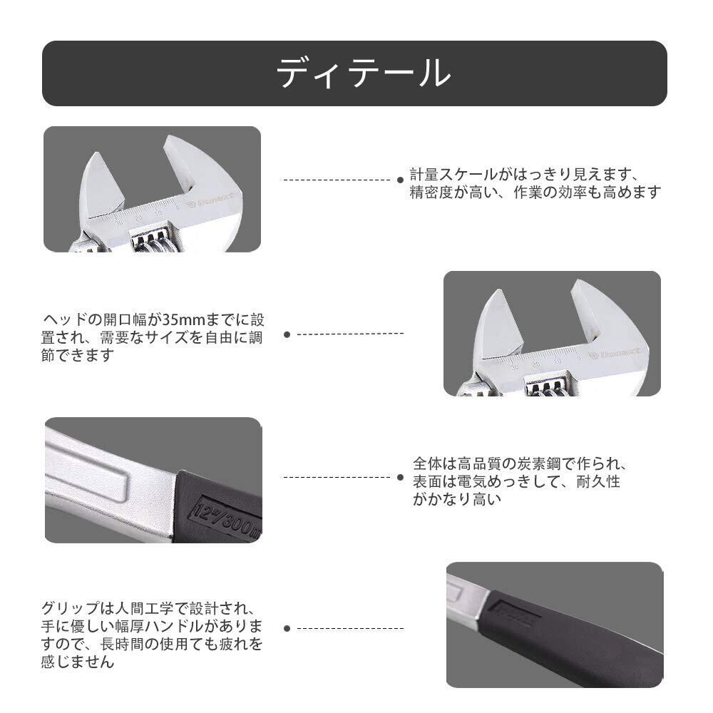 【使用簡単】全長300mm(12")で、ヘッドの開口幅は35mmまでに調整され、需要なサイズを自由に調節できます。狭い箇所でも使いやすいです。機械修理、自動車修理、家庭のメンテナンス、工場内作業や建築現場からDIYまで幅広くご使用いただけます。