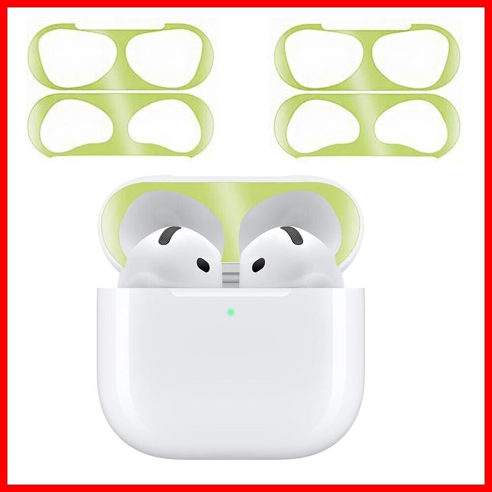 【2024強化版】ILYAML for AirPods 4 ダストガード エアーポッズ 4用 ガードカバー 故障防止 吸着 ほこり ゴミ 金属製 侵入防止 防塵 粉塵防止 グリーン 4枚(2セット)