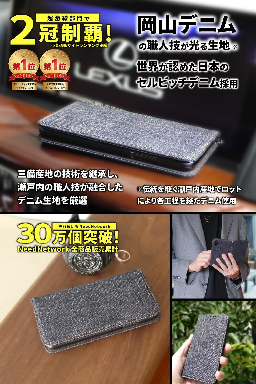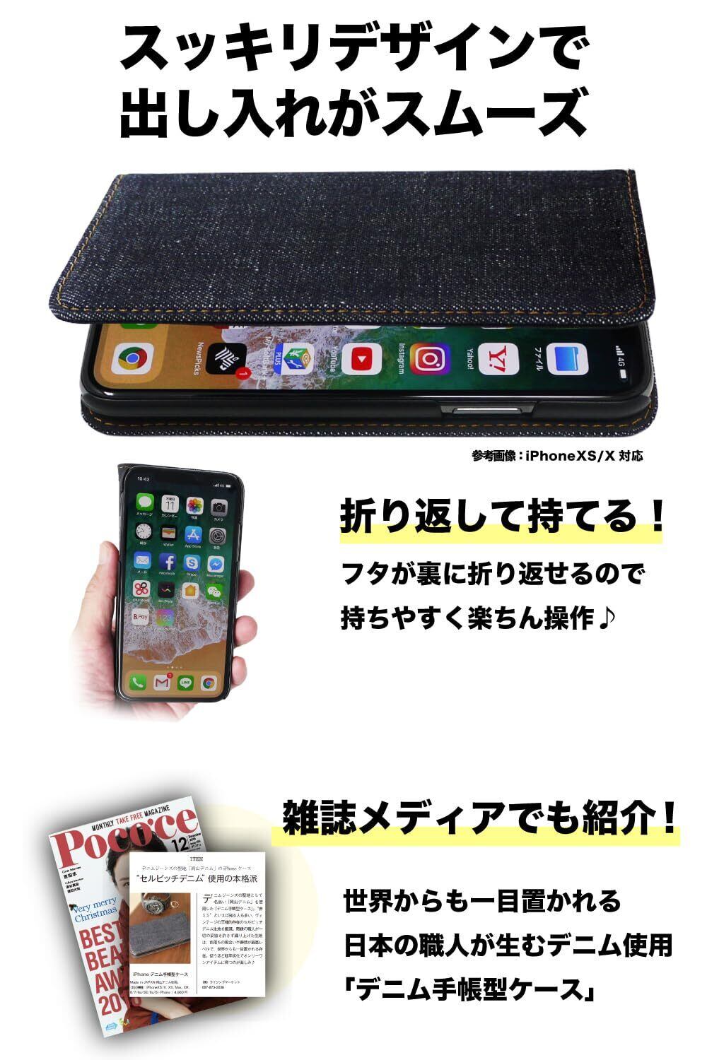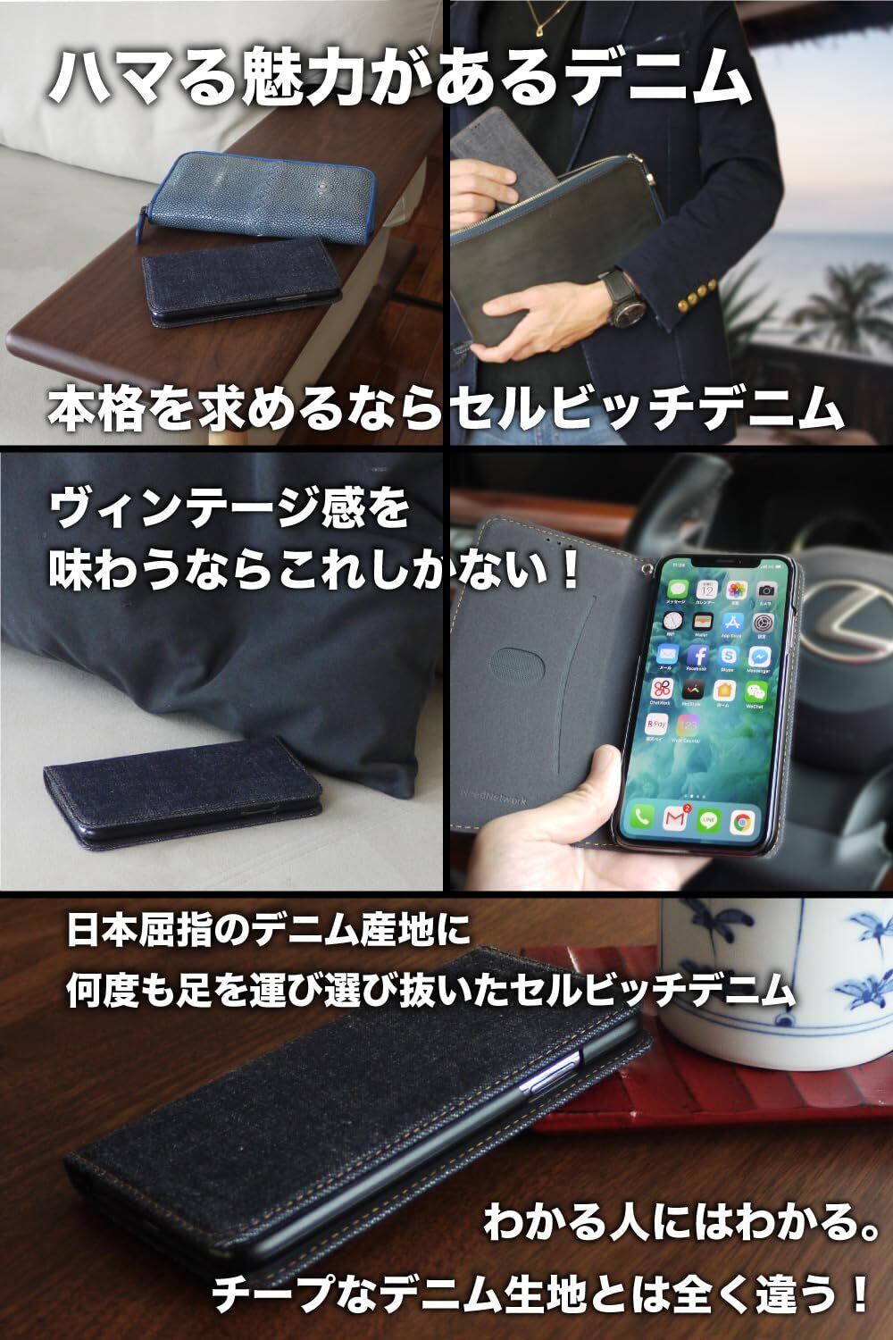 【デニムの魅力にハマる。】デニム生地選びのため何度も生産地に足を運び、特に使い込む「色落ち」「風合い」「耐久性」が最高レベルのセルビッチデニムを使用した手帳型スマホケースです。 熟練職人の手による丁寧なものづくりが魅力。日本屈指のデニム産業のエリア三備産地で受け継がれた技術は、高いクオリティで知られ、世界からも一目置かれるメイド・イン・ジャパンのデニム素材。 このデニムを求めて、国内外から多くのマニアが訪れるほど。ジーンズ好きが魅了されるデニム。