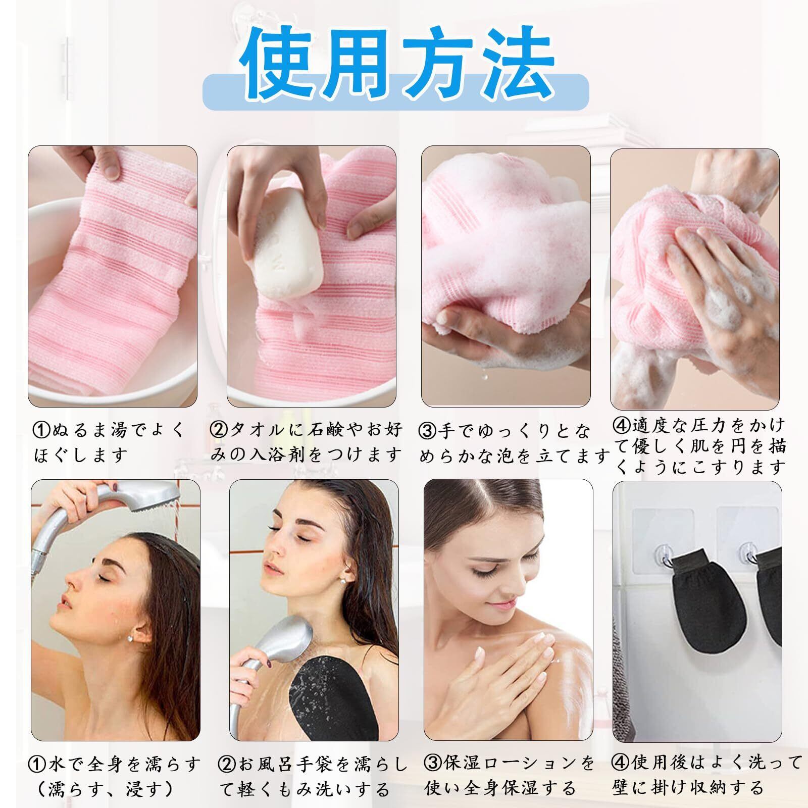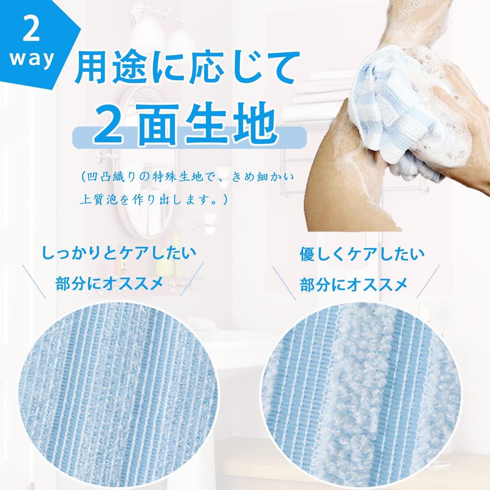 【 垢すり タオル】◆サイズ:約长さ107cm×幅25cm。背中だけでなく、気になる部分全身で使用可能。◆重量:約53g◆素材:ポリエステル約80%、ナイロン約20%。。凹凸織りの特殊生地で、きめ細かい上質泡を作り出します。◆伸縮性:あり。弾力のあるボリュームと適度なシャリ感で今までにない肌ざわりを楽しめます。◆速乾性があり、清潔に保つことができ、何度でも使用できます。注:お肌の弱い方、幼児、アレルギー体質の方、及び皮膚に異常のあるときはご使用をお避けください。