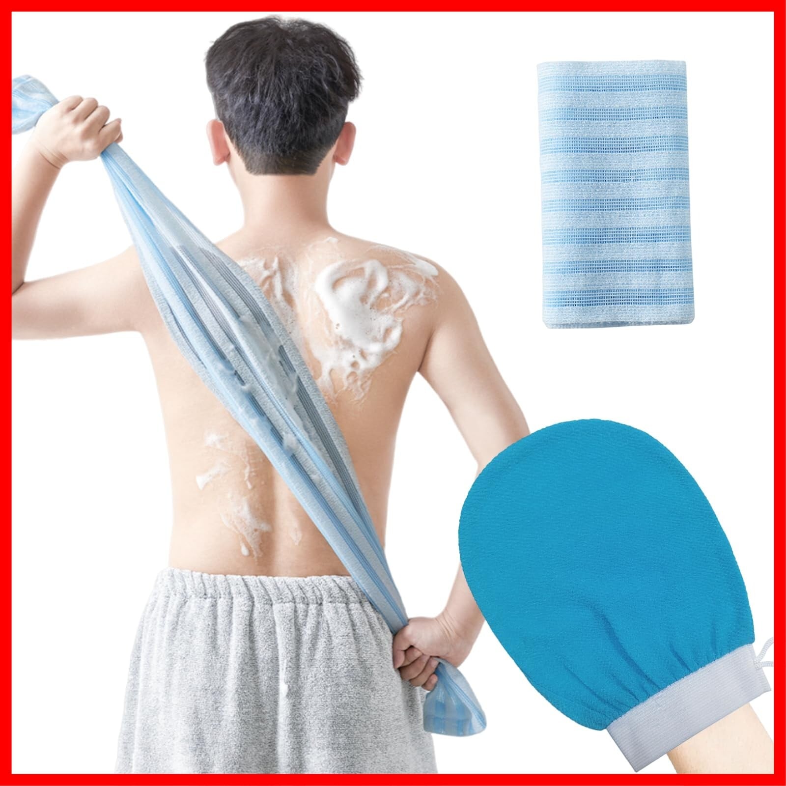 [Senteria] 垢すりタオル あかすり ミトン お風呂手袋 2点セットブルー 肌に優しい 角質取り 両面の血行促進 体臭ケア 繰り返し使用 泡立ち ボディタオル ハード 腕 背中 足 脚 男女兼用 お風呂 浴用 手袋 入浴用品 ギフト プレゼント 贈り物