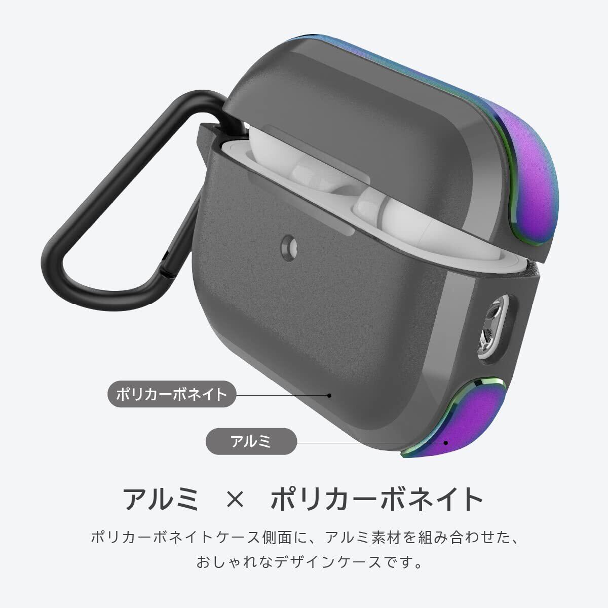 【RAPTIC】 AirPods Pro2 対応 ケース 耐衝撃 カラビナ 付き カバー アルミ × PC ハイブリッド AirPods Pro2ケース [Apple AirPods Pro 2 アップル エアポッツプロ2 第2世代 MQD83J/A MTJV3J/A 対応 ] Trek イリデセント | hananoki