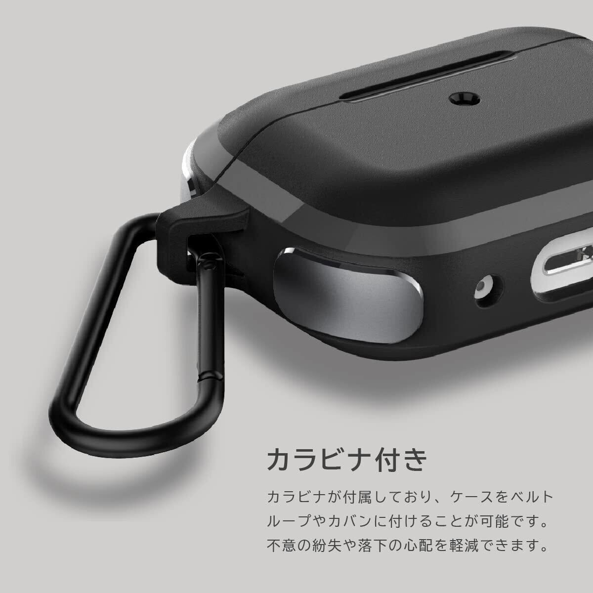 【製品特徴】… ◆ Qi ワイヤレス充電 : 対応 ◆ 充電用LEDライト : 見える ◆ カラビナ : あり ◆ 充電口 : オープンカット ◆ ペアリングボタン : 装着したまま使用不可 ◆Lightning ケーブル : 対応◆ USB C ケーブル : 対応 ◆ 注意事項 : カラビナを強く引っ張ると外れてしまう恐れがあります。また、ワイヤレス充電の際は、カラビナを必ず取り外して下さい。発熱の恐れがあります。