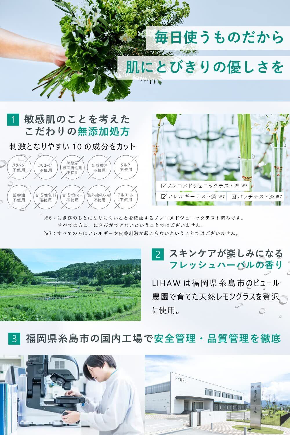 有機JAS認定農園で採れたレモングラスの精油など、天然由来100%のすっきりとした香り。ポジティブなスキンケアタイムを。