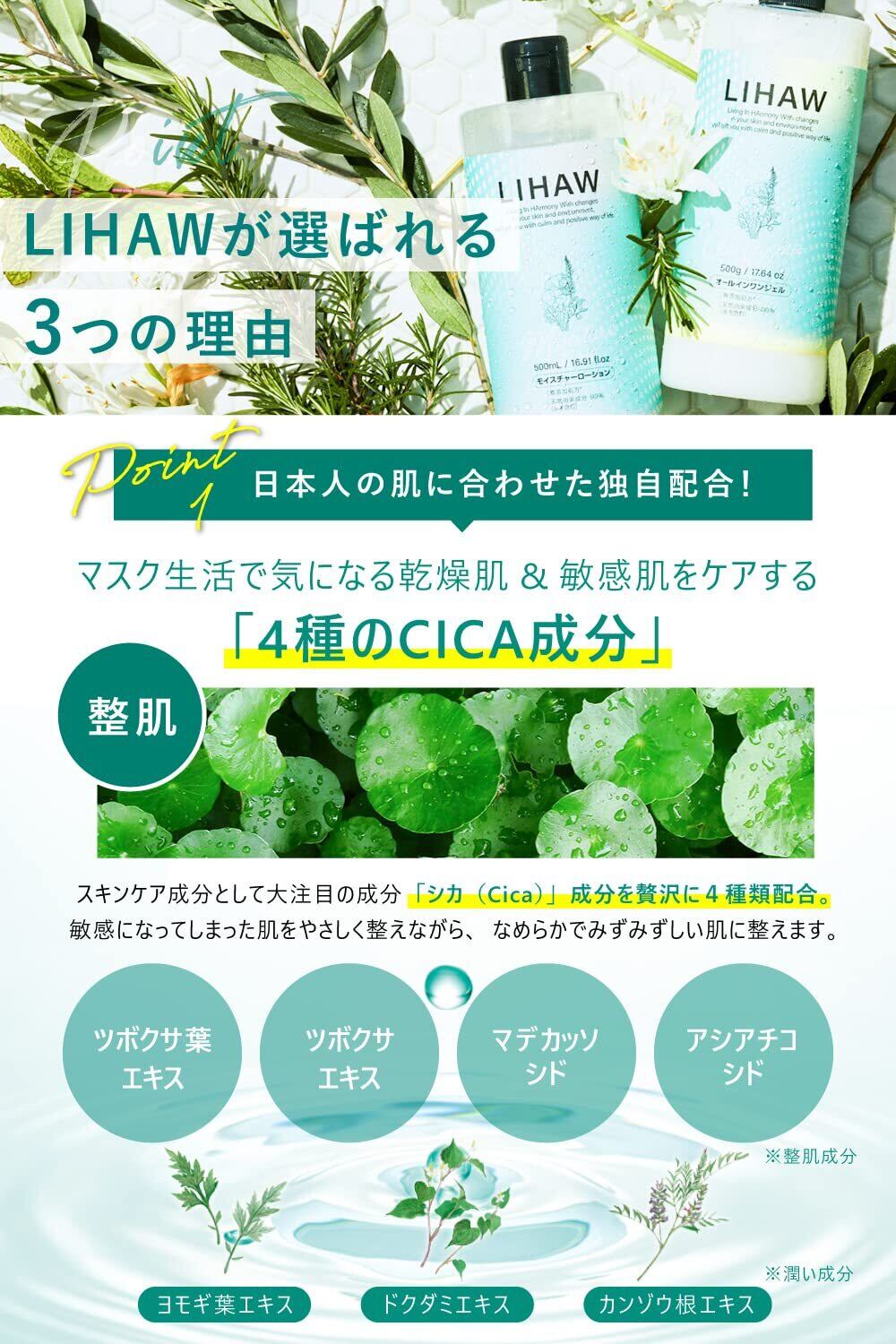 LIHAW(リハウ)モイスチャーローション【シカ×大容量(500mL)】4種のCICAエキス×濃密セラミド配合 ×2本