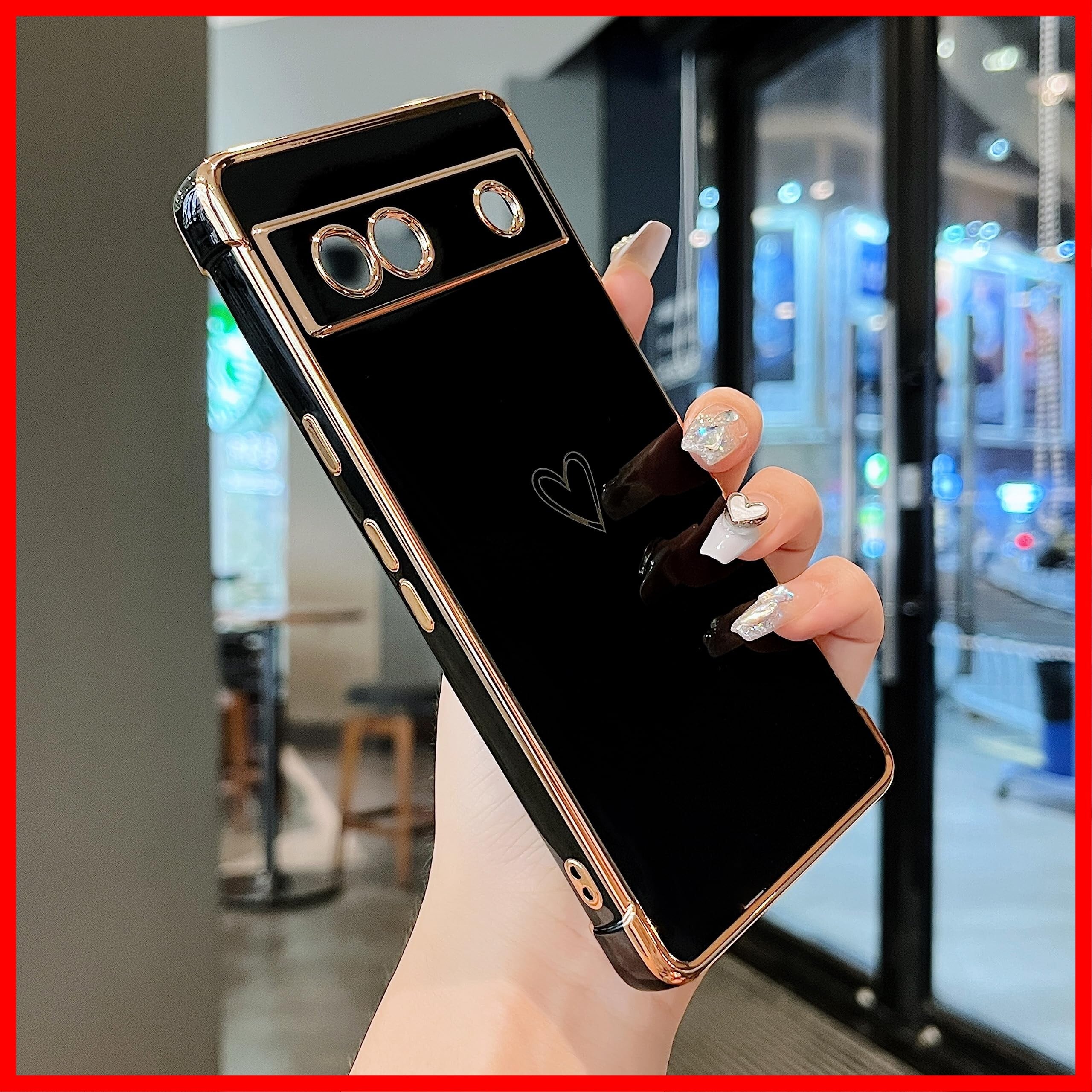 ZTOFERA Google Pixel 7a 用 ハートケース 柔軟な TPU シリコン メッキ加工 ソフト 軽量 耐衝撃 おしゃれ 韓国 可愛い Google Pixel 7A ケース 携帯カバー 女性 心パターン スマホケース ワイヤレス充電対応 (ブラック) | hananoki
