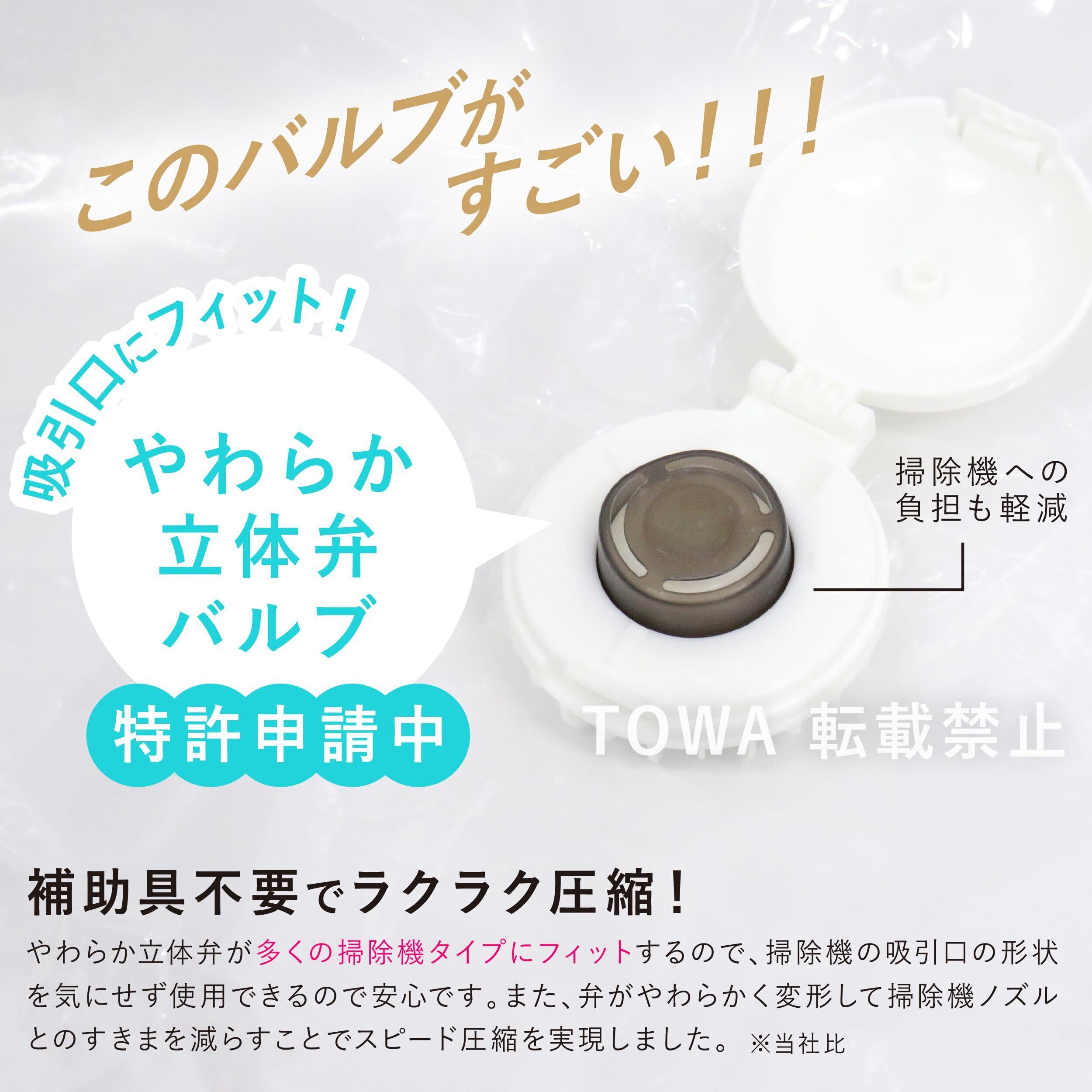 ●多くの掃除機タイプにフィットするやわらか立体弁バルブを採用 ●スティック掃除機・従来型掃除機にも対応した圧縮袋 ●掃除機ノズルとのすき間を減らしてスピード圧縮※当社比 ●くぼみ付きのバルブで凸形吸引口でもあてやすい ●わずかにすき間を残して掃除機への負担を軽減します。