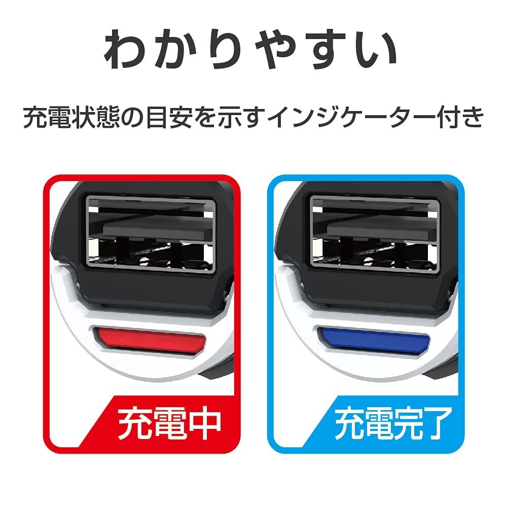 USB機器の充電状態の目安を示すインジケーターを搭載しています。 ※充電中は「赤色」、充電完了時は「青色」にインジケーターが変化します。