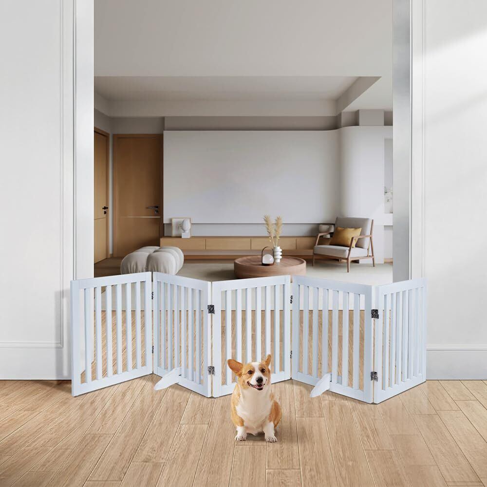 unipaws 木製犬用ゲート、折り式バリア、ペット用家具フェンス 、白い