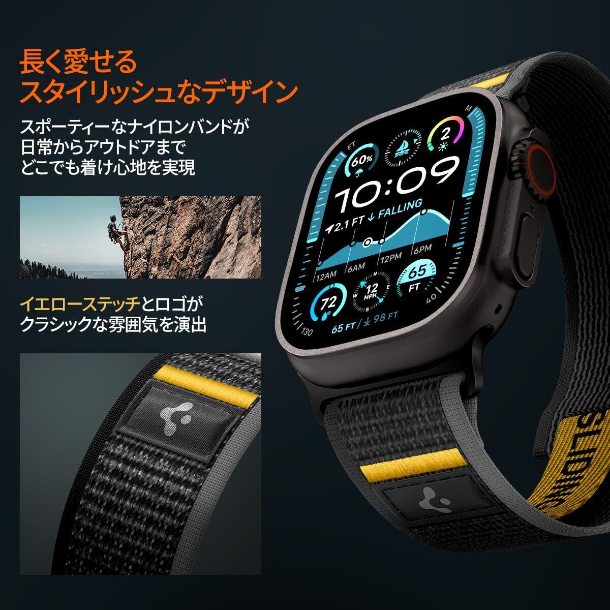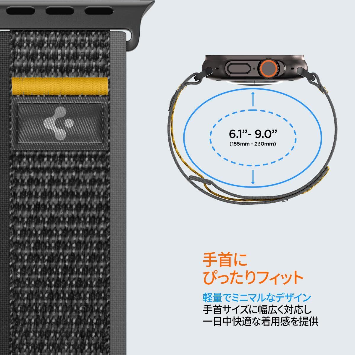 Spigen Apple Watch バンド 49/46/45/44mm 【簡単でしっかり装着】 Apple Watch Ultra 2/Ultra/10/9/8/7/6/5/4/SE2/SE対応 ストラップ ファブリック素材 通気性 アスレックス・エア