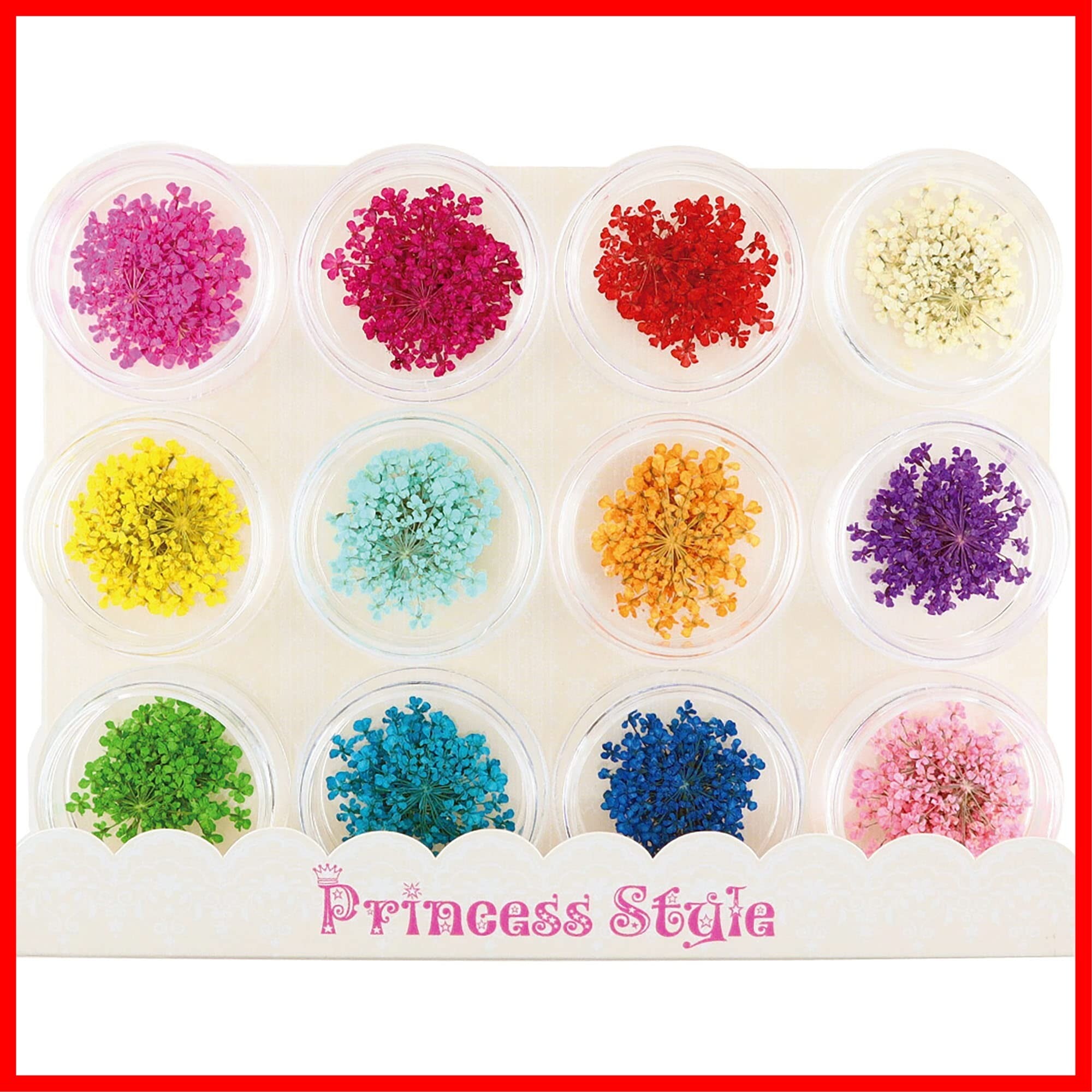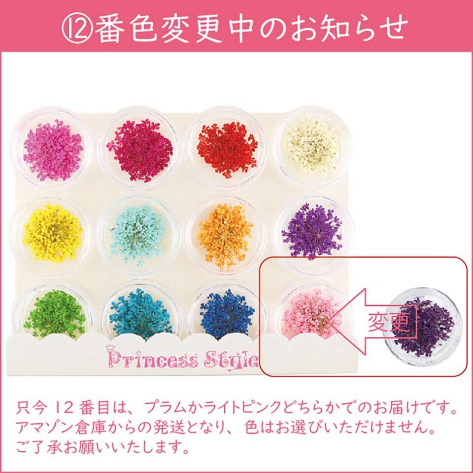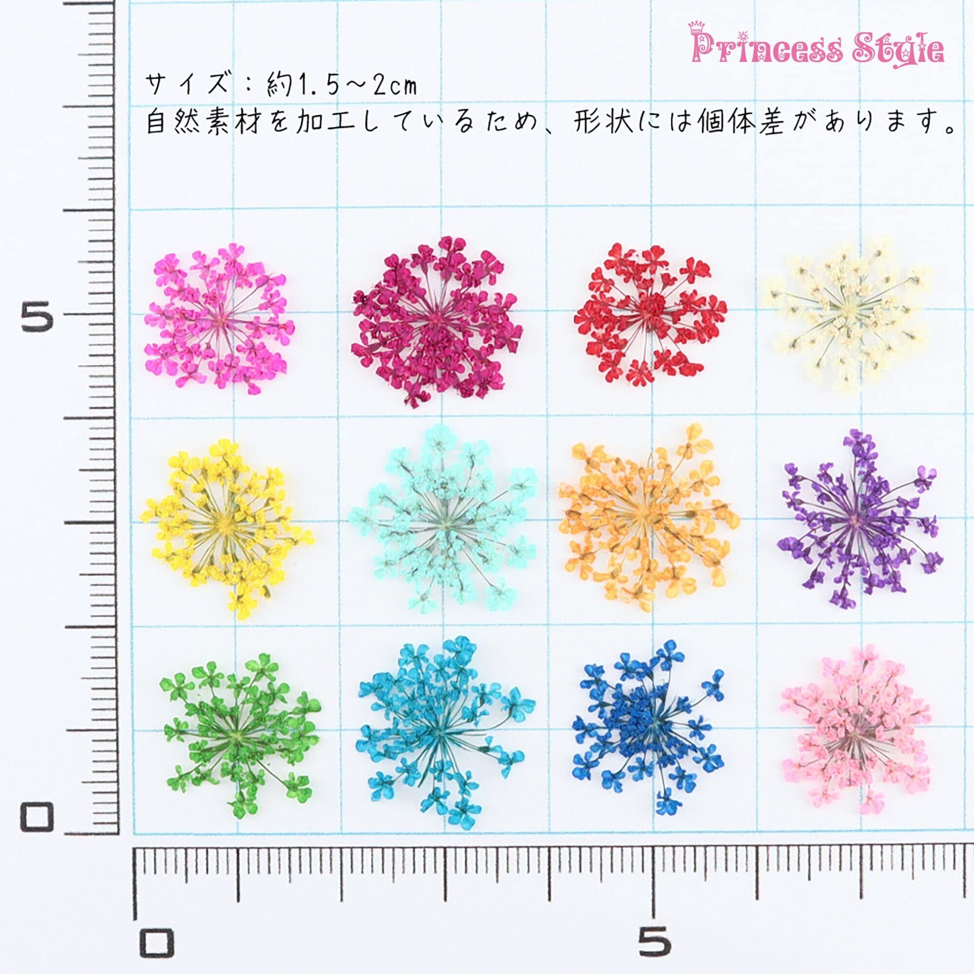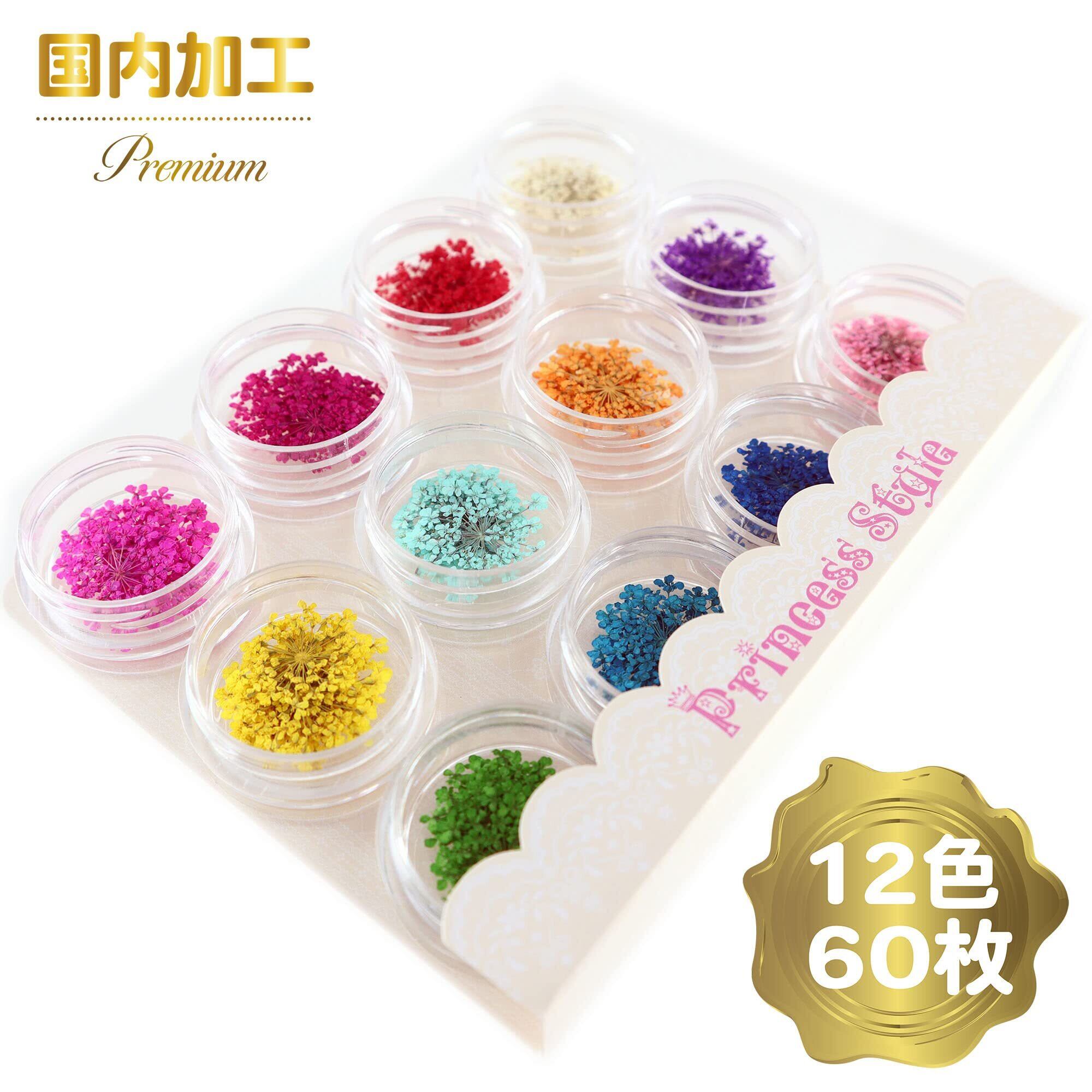 Princess-style ドライフラワー レース 押し花 ネイル パーツ レジン 封入 60枚ケース入り 12色×各5枚