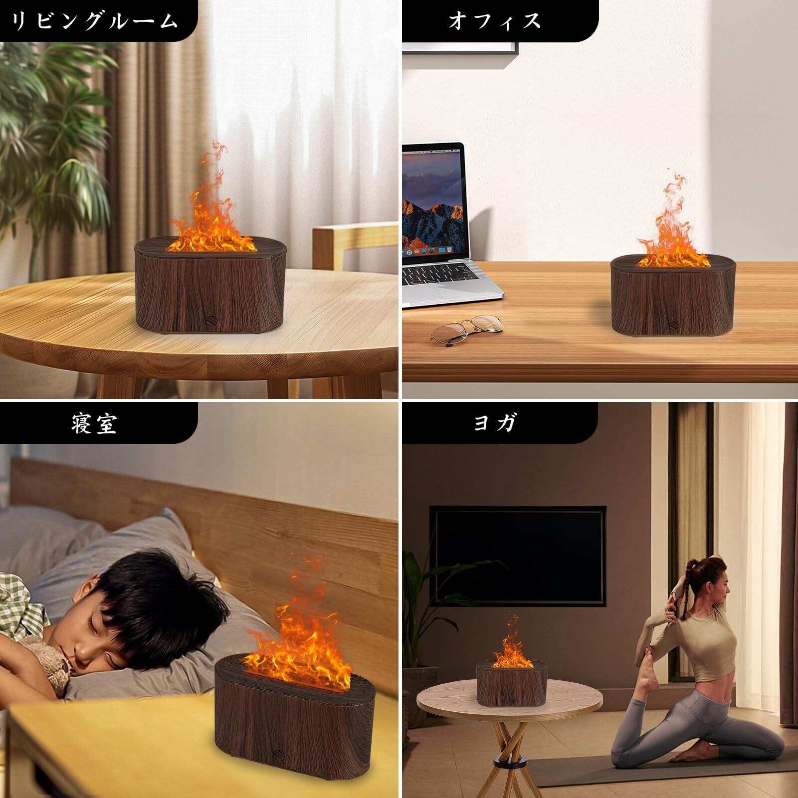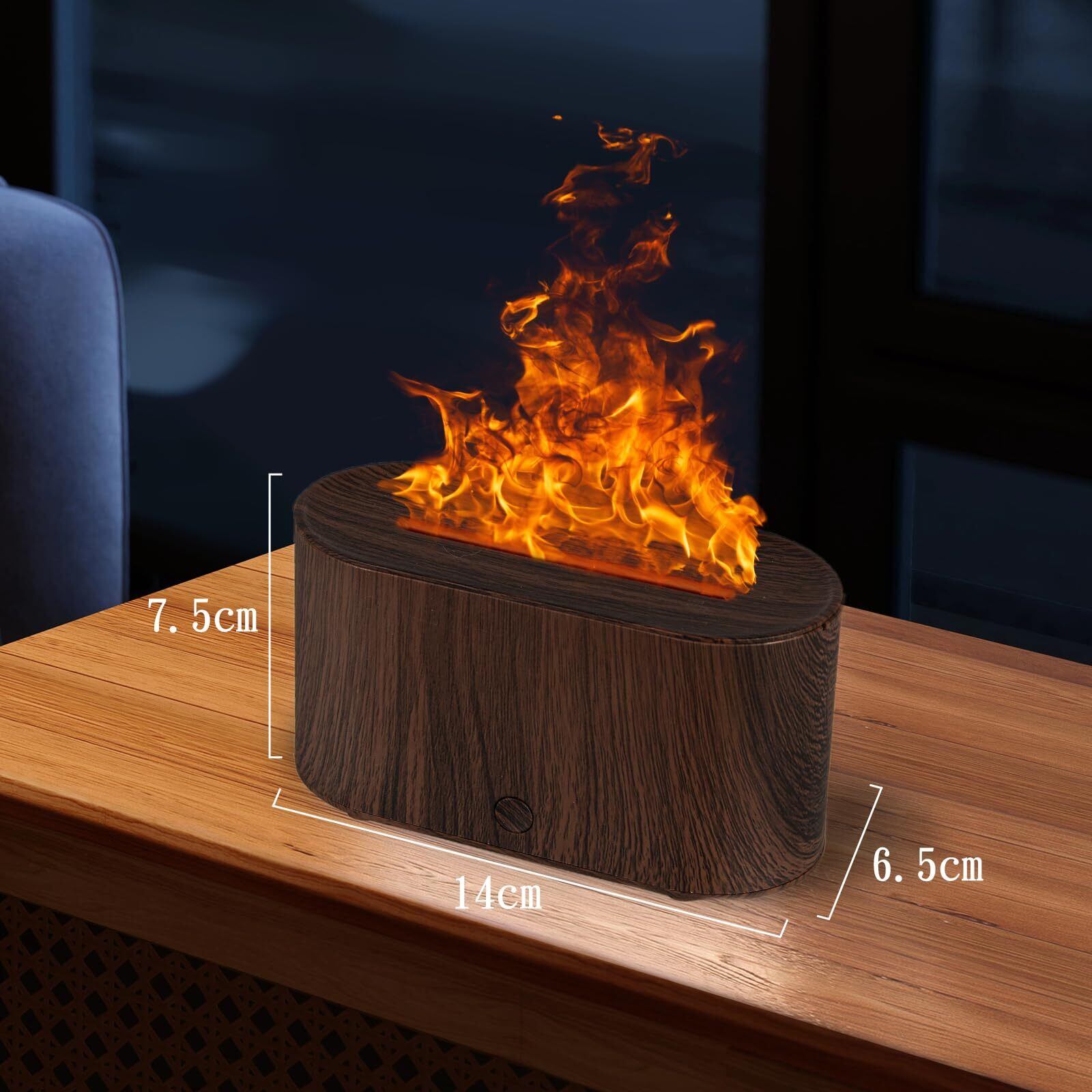 Todeco アロマディフューザー 炎 加湿器 7色LEDライト 小型 卓上加湿器 超音波加湿器 アロマ対応 静音 Type-c 給電式 空焚き防止 自動オフ ポータブル 寝室 リビング オフィス デスク 乾燥/花粉症対策(ダークウッド)