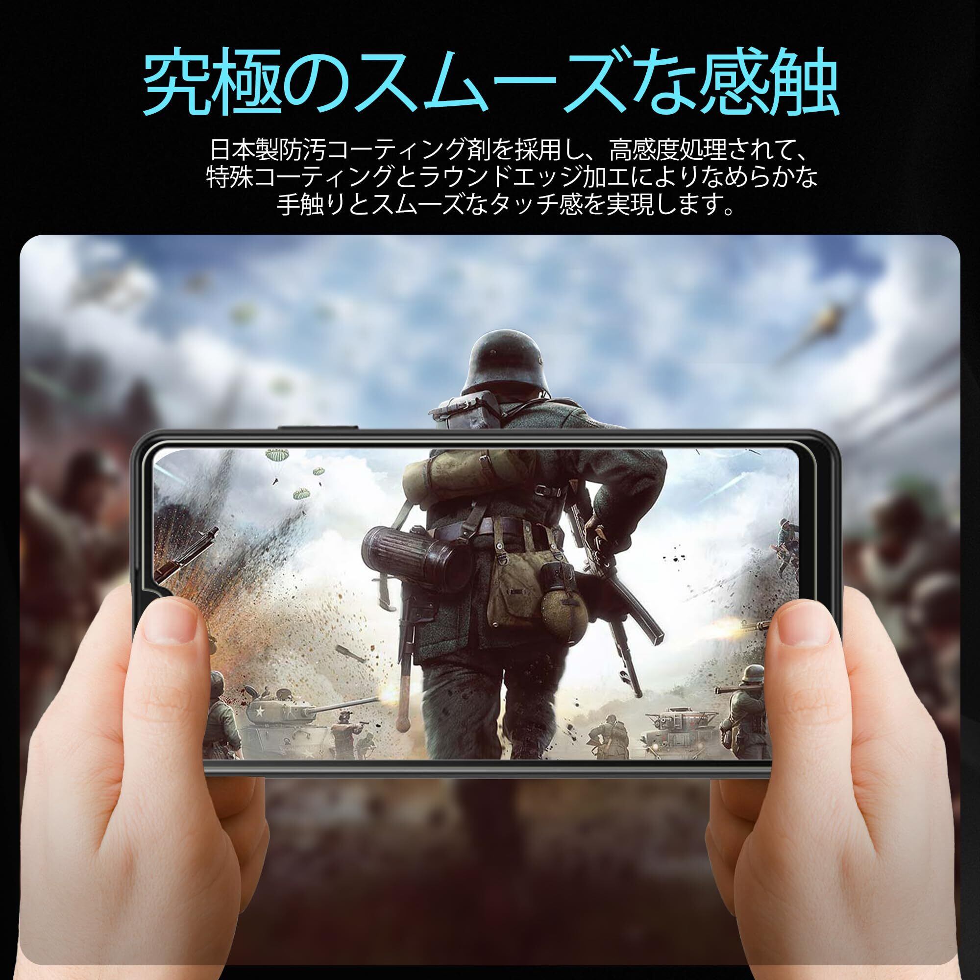 【指紋防止、高感度タッチ】ガラスフィルムには撥油コーティングが施されており、指紋や汚れなどに強くなめらかな操作感を実現、付着した汚れなどは簡単に拭きとれます。こちらは高耐久撥油コーティングが施され、つるつるな滑り感を実現!ゲームしても渋くなし!
