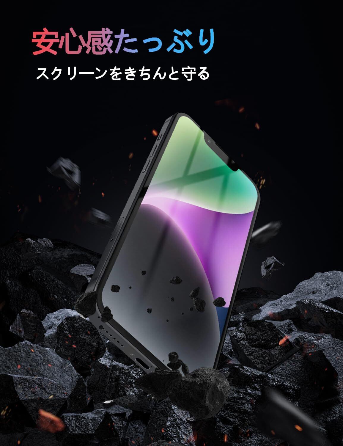 【高品質日本製素材】日本製旭硝子素材の採用、また硬度は業界最高レベルの9Hであり、カッタ一などの鋭利なものを当てたとしても損傷なく長らく使えます。特殊な飛散防止設計により、万一割れてしまった際にもガラス片が飛散することなく、高い安全性を実現しています。