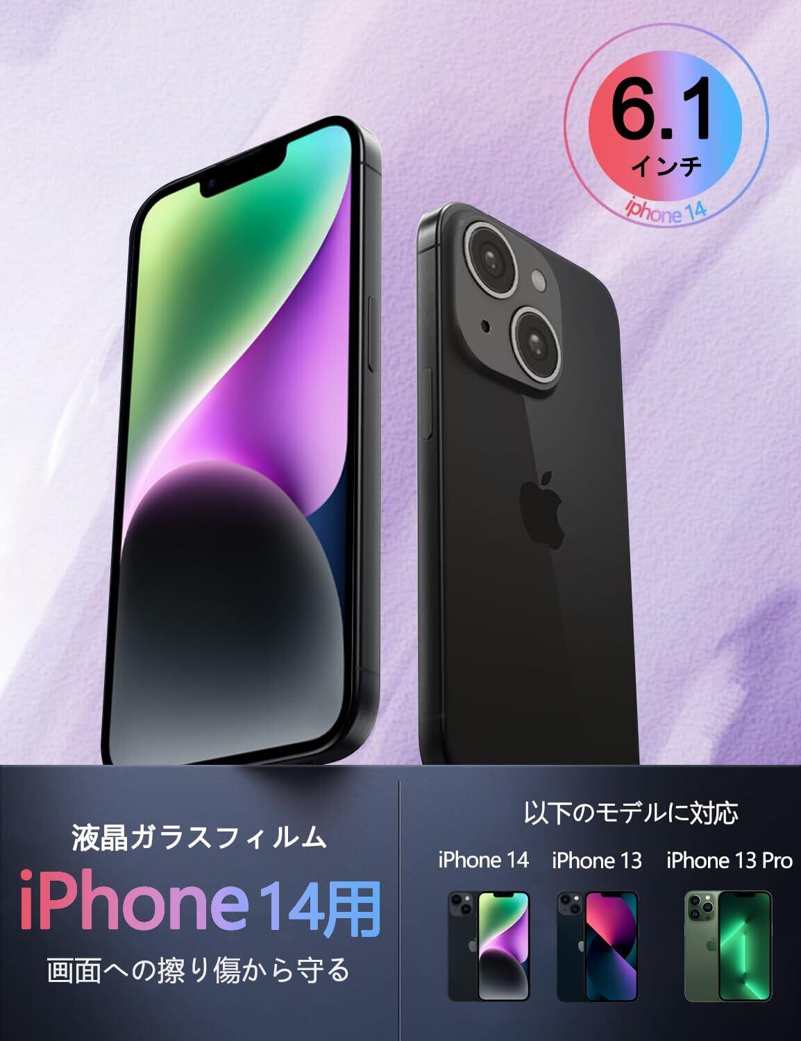 【対応機種】iphone14/13 Pro/13 に適応しています! ガラスフィルム*2枚、フィルム貼り道具*2 、ガイド枠付き*1取付枠は取付けをより容易にすることができ、インストール プロセスで泡を作り出しません。