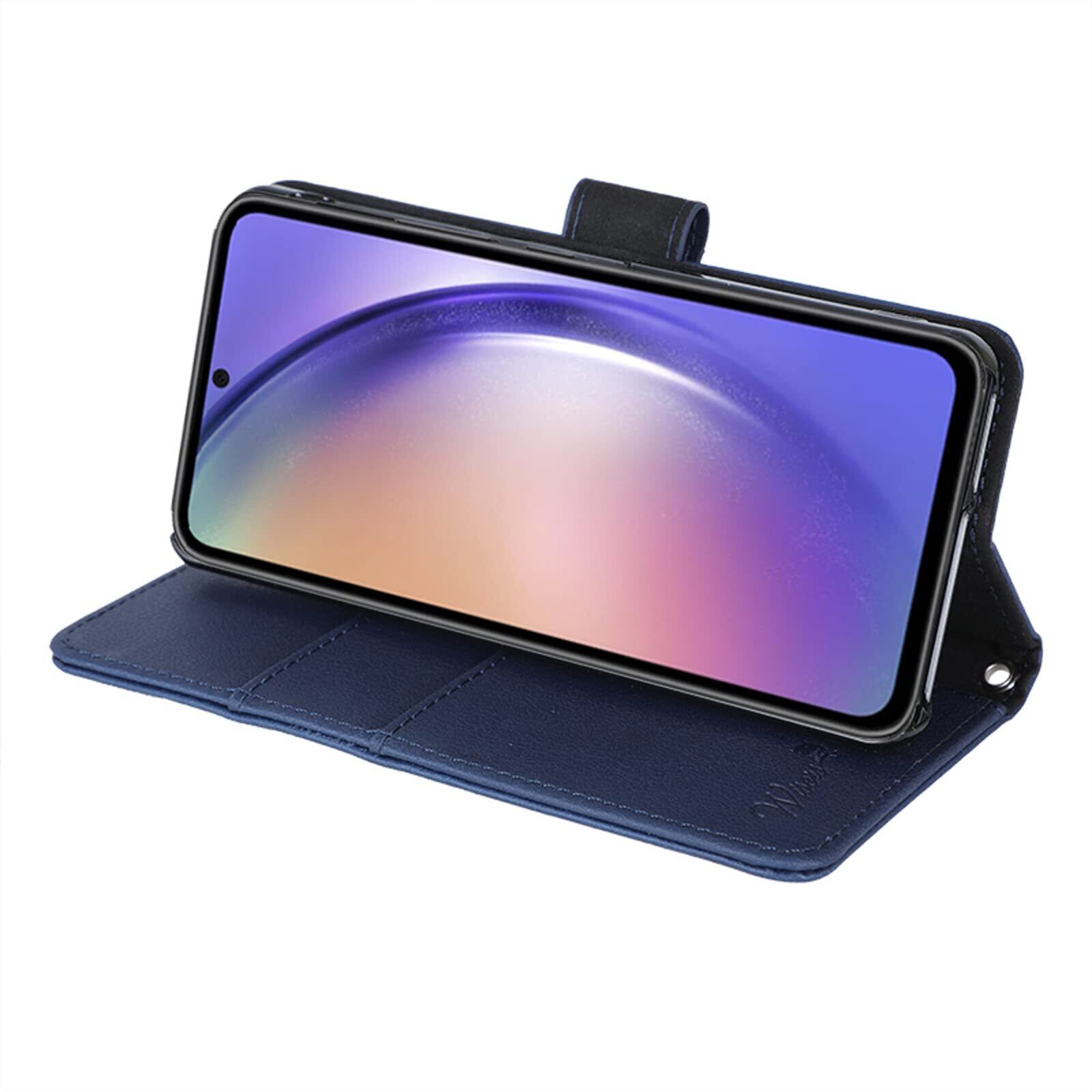 wisers Galaxy A54 5G SC-53D SCG21 対応 手帳型 スマホケース (ダークブルー) 牛革PUレザー (カードホルダー/スタンド機能付) ストラップ 2種付き (ハンドストラップ/ネックストラップ)