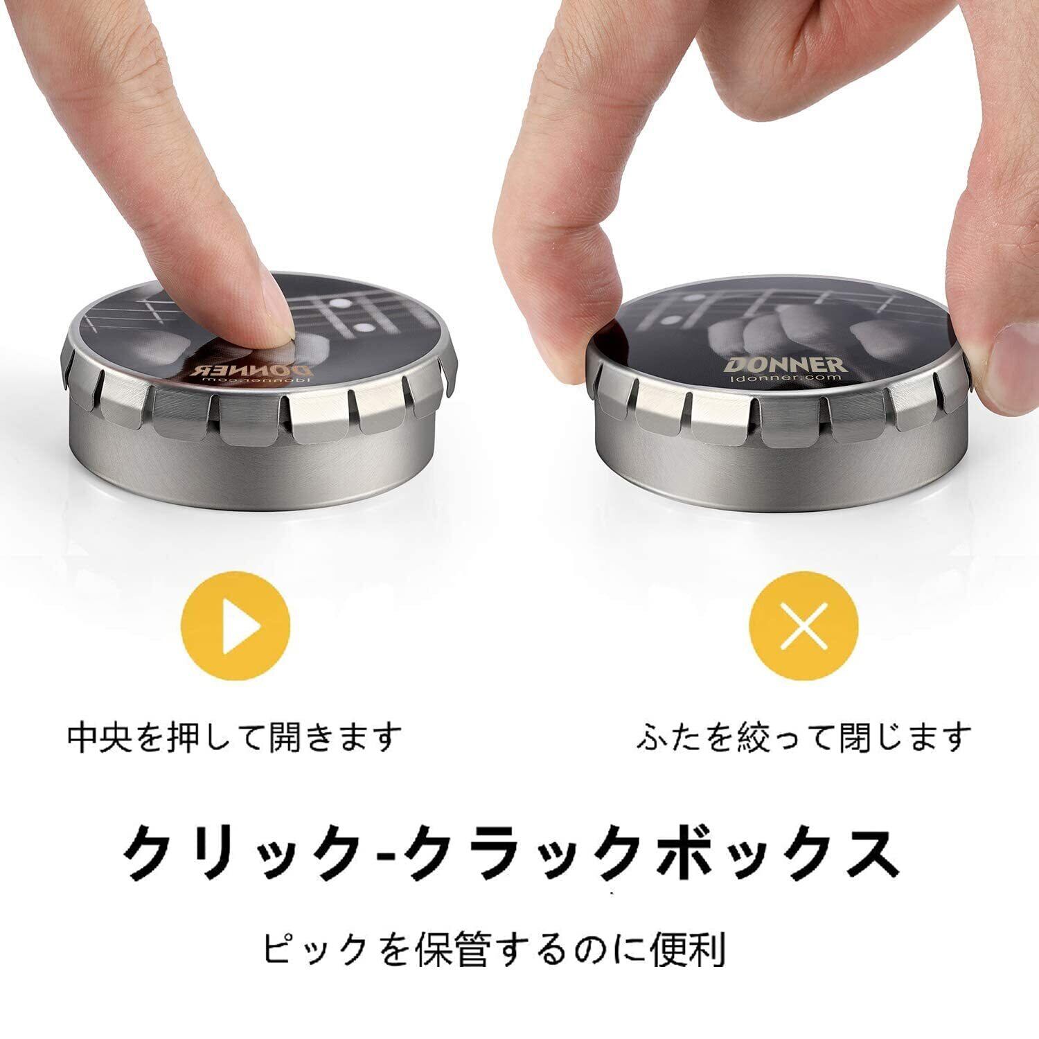 繊細な円形クリッククラックボックスで、任意のポケットやギターケースがすっぽり入ります。蓋の中央を押して開かれている(クリック!)