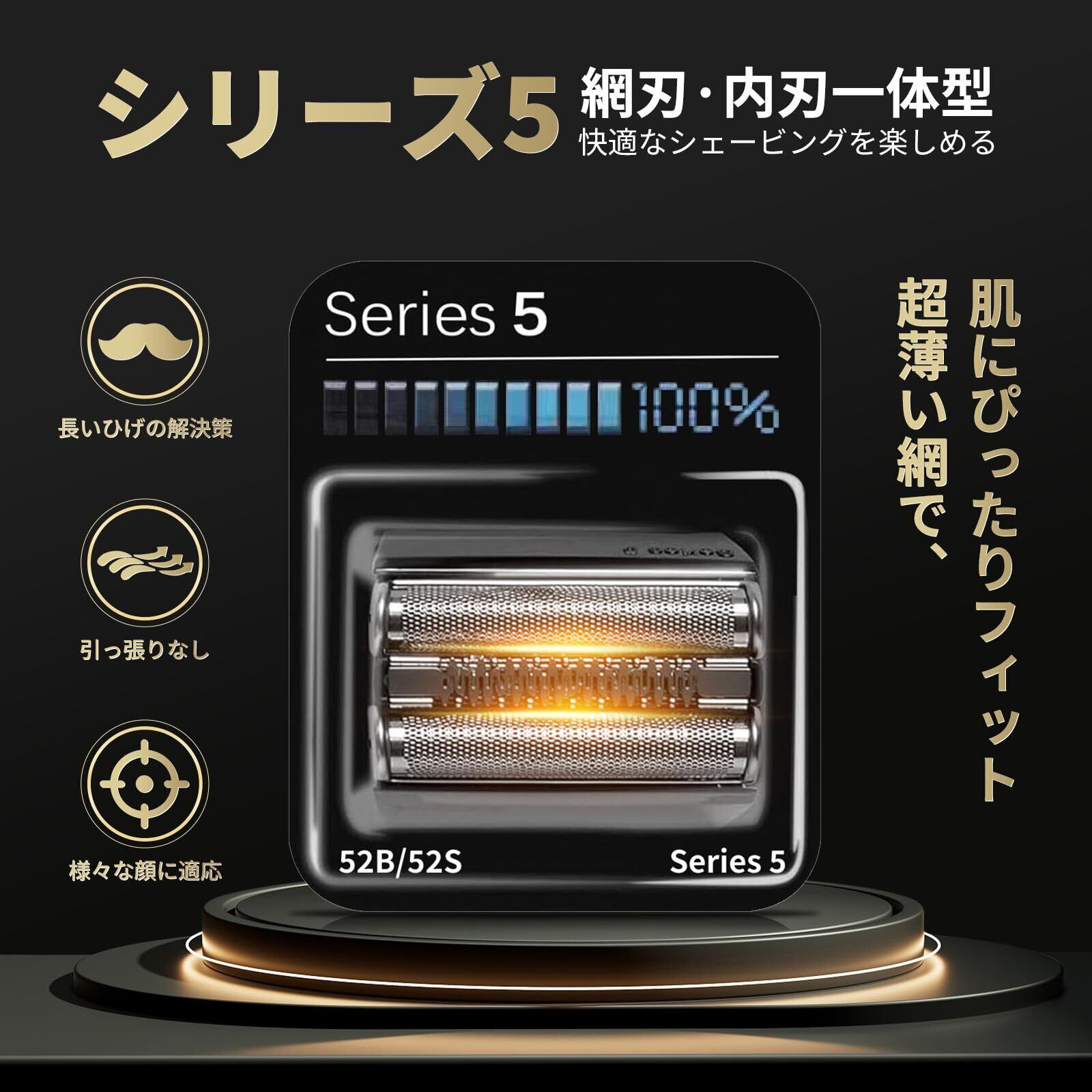 ブラウンシェーバー 対応 シリーズ5 替刃 F/C 52B 52S 互換品 Braun Series 5シェービング替刃 網刃・内刃一体型 メンズシェーバー用 電気シェーバー交換ヘッド 髭剃り交換ヘッド カミソリアクセサリ (52B ブラック)