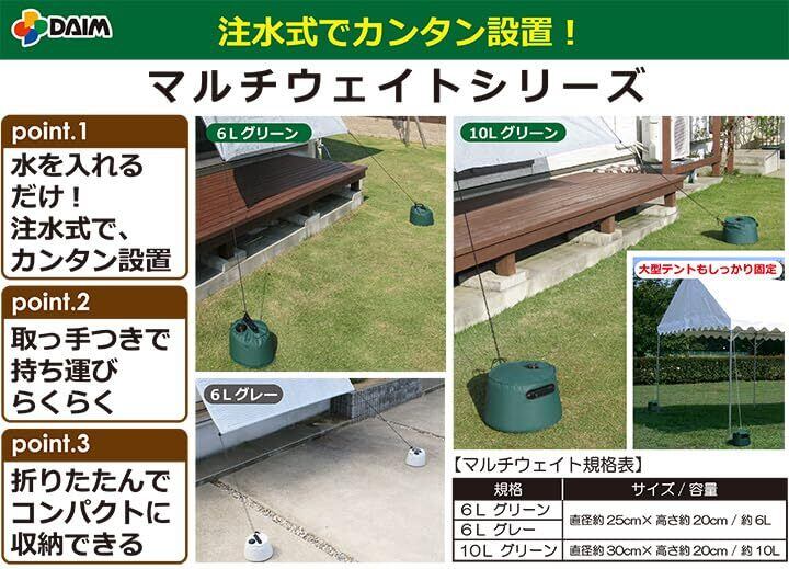 daim テント 重り マルチウェイト 10L グリーン 1個 [注水式] タープ ウェイト イベント 運動会 マルシェ フリマ タープ用 ウエイトバッグ