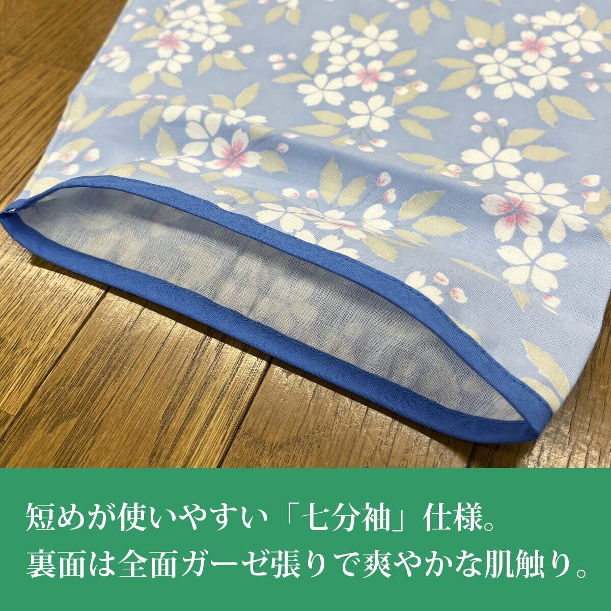 パジャマとして、また入院・介護用としてお使い頂けるガーゼ寝巻きです。七分袖、七分丈タイプなので体にまとわりにくく使いやすい。紐は腰横で結ぶので、うつ伏せ寝でも苦しくなりにくい仕様です。 紐は本体に縫い付けてありますので紛失の心配も無し。吸汗性の良い綿100%のガーゼ生地を使用しています。 安心安全の日本製。※柄はおまかせです。画像以外の柄になる場合もございます。