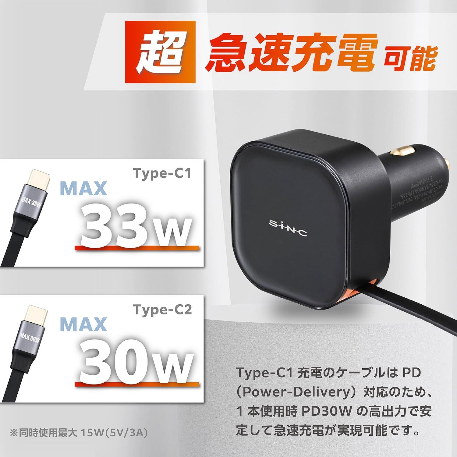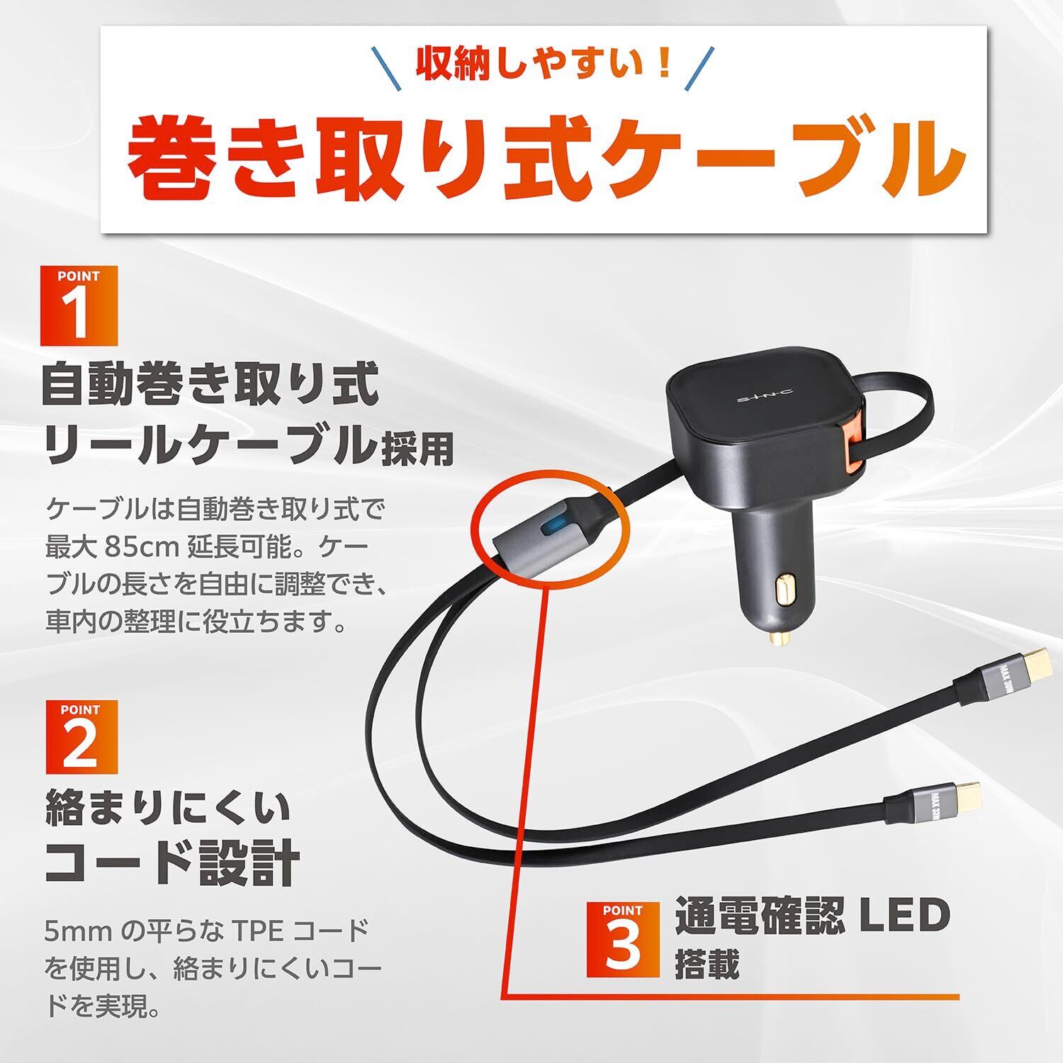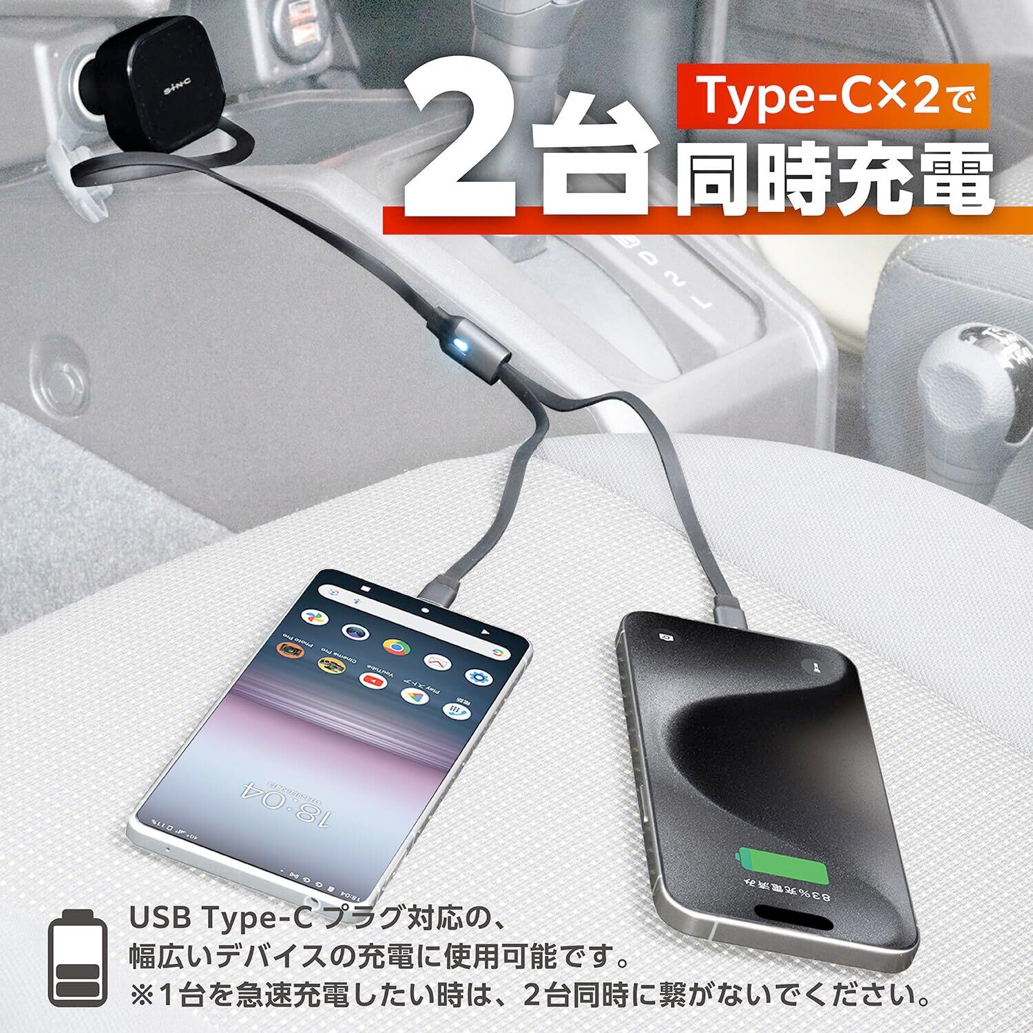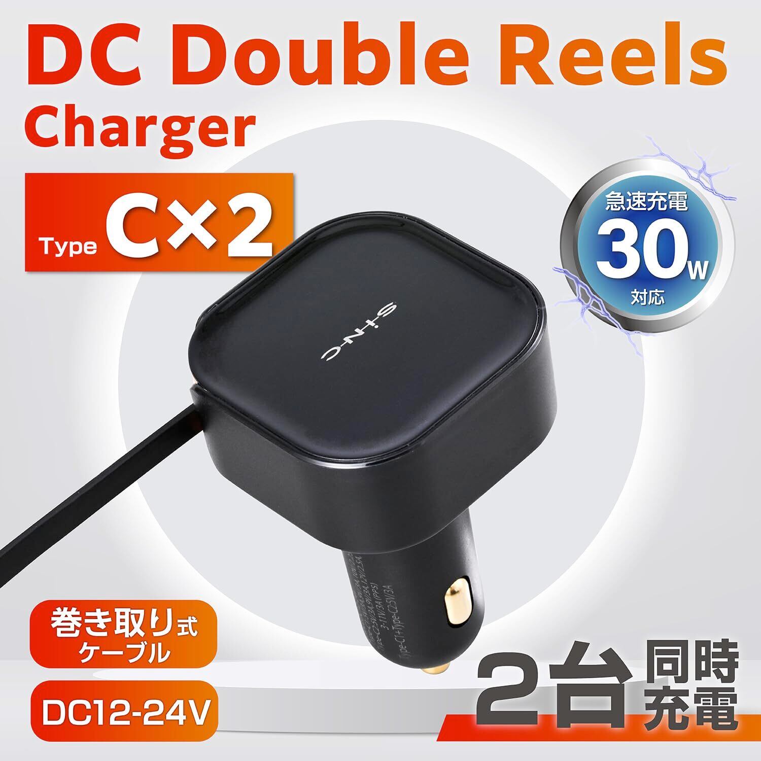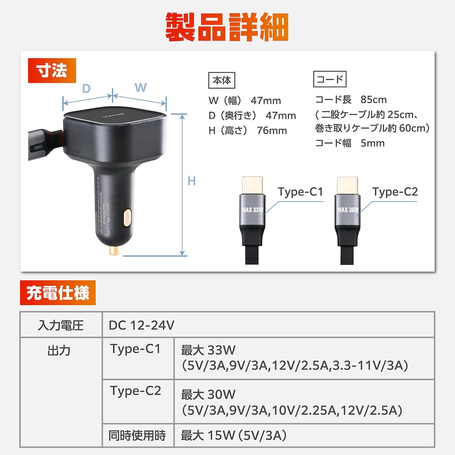 セイワ(SEIWA) 車内用品 充電器 DCダブルリールチャージャーC×2 IMP305 USB Type-C PD30W 急速充電 2台同時充電時 合計最大15W(5V/3A) 巻取り式 ケーブル コード長 最大85cm DC12-24V対応 過電流 過電圧 過熱 保護 | hananoki