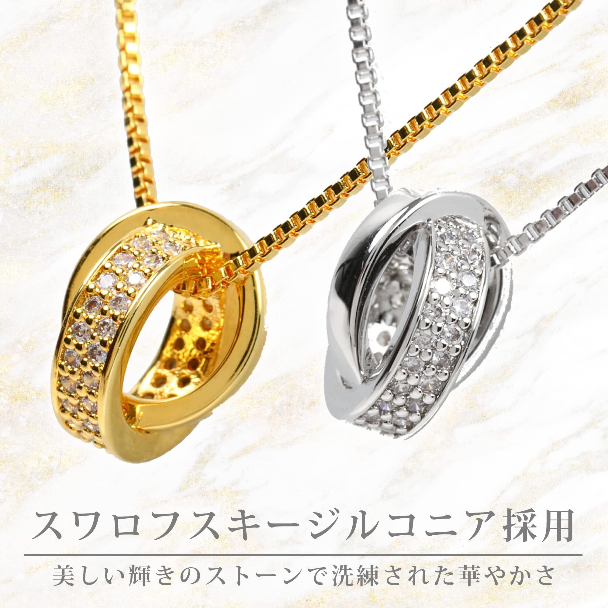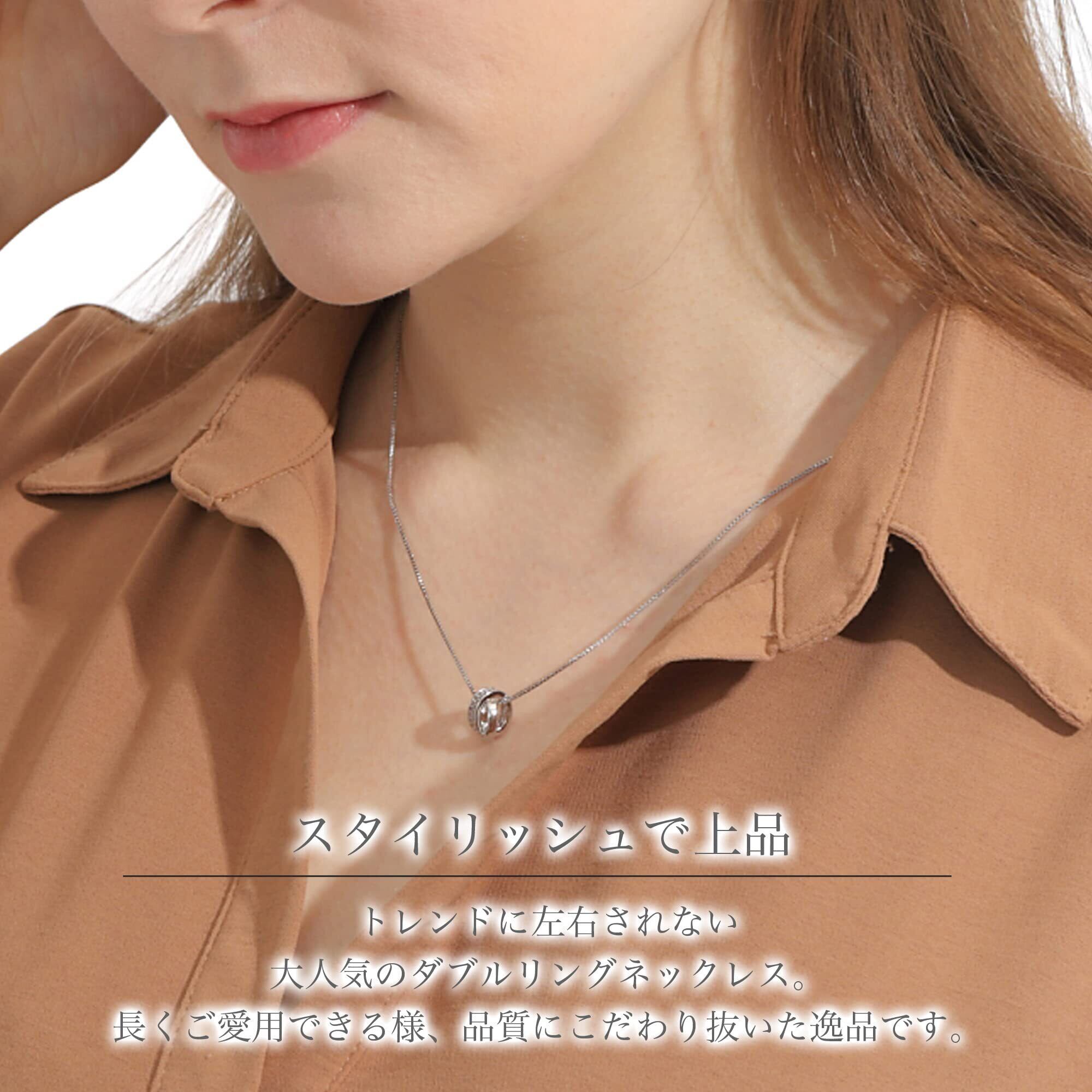 Aneige ネックレス レディース メンズ ダブルリング シルバー925 スワロフスキー ジルコニア 金属アレルギー対応 シンプル ペンダント ベネチアンチェーン 50cm 長さ調整可能 ギフト プレゼント