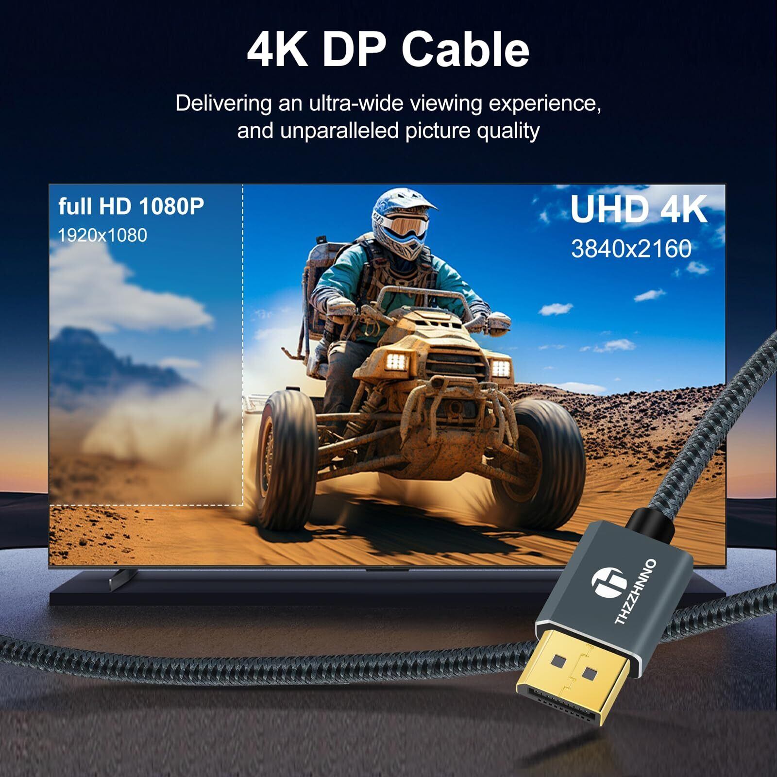 Thzzhnno 4K DisplayPort ケーブル 2M 、ナイロン編組DisplayPort to DisplayPort 1.2ケーブル、 DPケーブル 金メッキ 高速4K@60Hz 2K@165Hz 2K@144Hz ノートパソコン PC ゲーミングモニター テレビ用