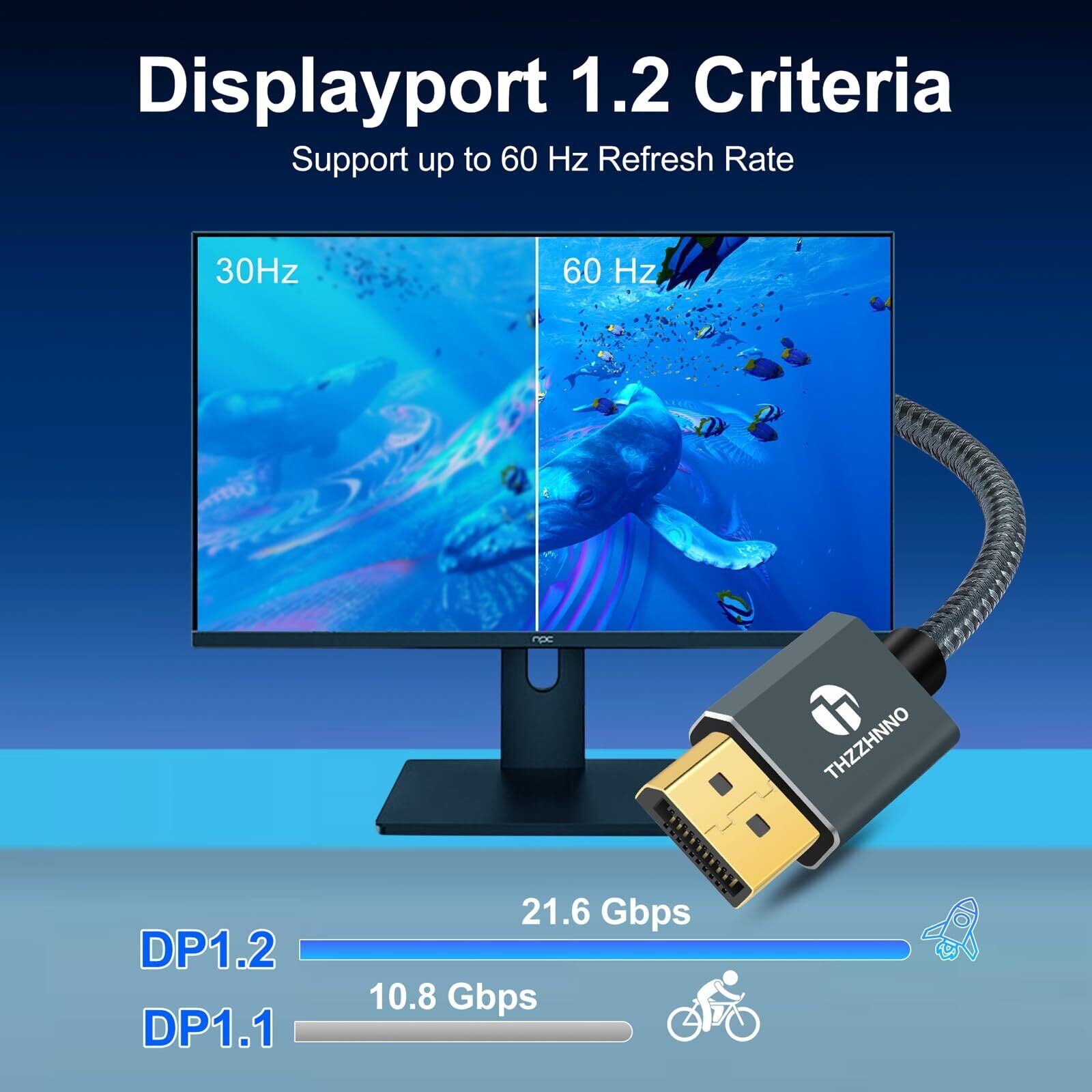【幅広い互換性】Thzzhnno 2M DP - DP 1.2ケーブルは、ミラーモード、拡張モード、ゲームモードをサポートします。 HDTV、モニター、プロジェクター、ゲーム用グラフィックスカードに簡単に接続して、クリアなオーディオと高精細ビデオを実現します。