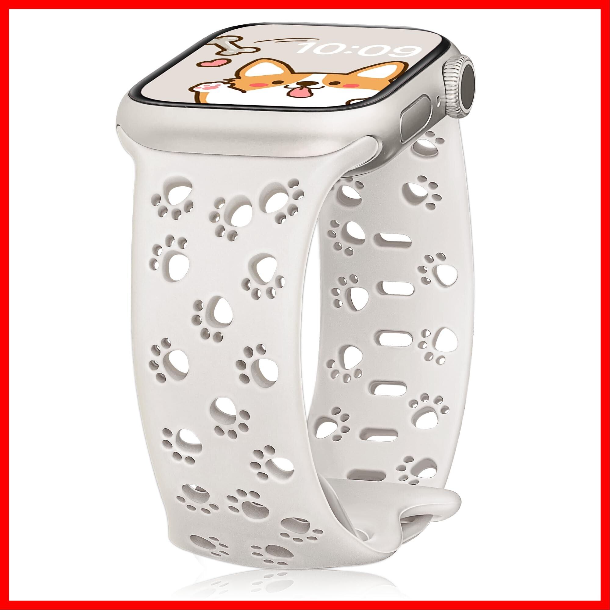 [SIBOYL]可愛い肉球シリコンバンド対応アップルウォッチ バンド レディースと男性41mm 40mm 38mm 42mm(Series10)、動物、猫、犬好きのための互换アップルウォッチ バンド シリコン、スーパーソフトiWatch バンド夏 蒸れない、快適性互换アップルウォッチ バンド スポーツ、対応Apple Watch 10バンド、互换Apple Watch Seバンド 9 8 7 6 5 4 3 2 1-スターライト