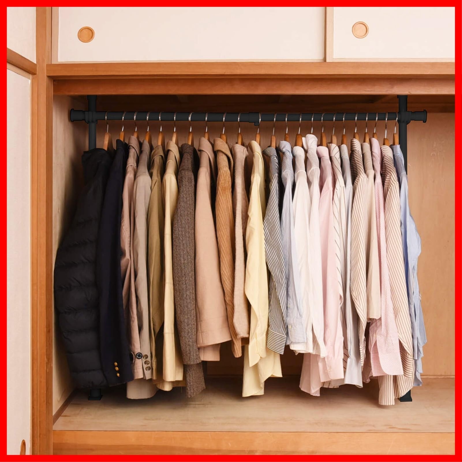 【ネジ・クギ不要】押入れを、服を掛けて収納できるクローゼットへと変えられるハンガーラックです。押入れ内をすっきりと整頓したい方におすすめです。突っ張り式なので、穴を開けずにカンタンに設置できるので賃貸住宅でもお使いいただけます。