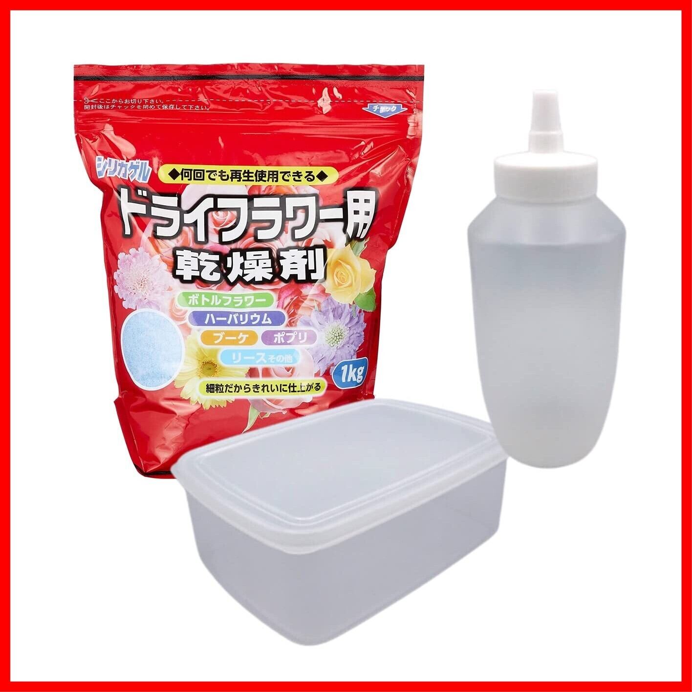 ドライフラワー用乾燥剤シリカゲル1kg 【容器セットNew!】専用ふりかけボトル(740ml)+大容量保存容器(2000ml)