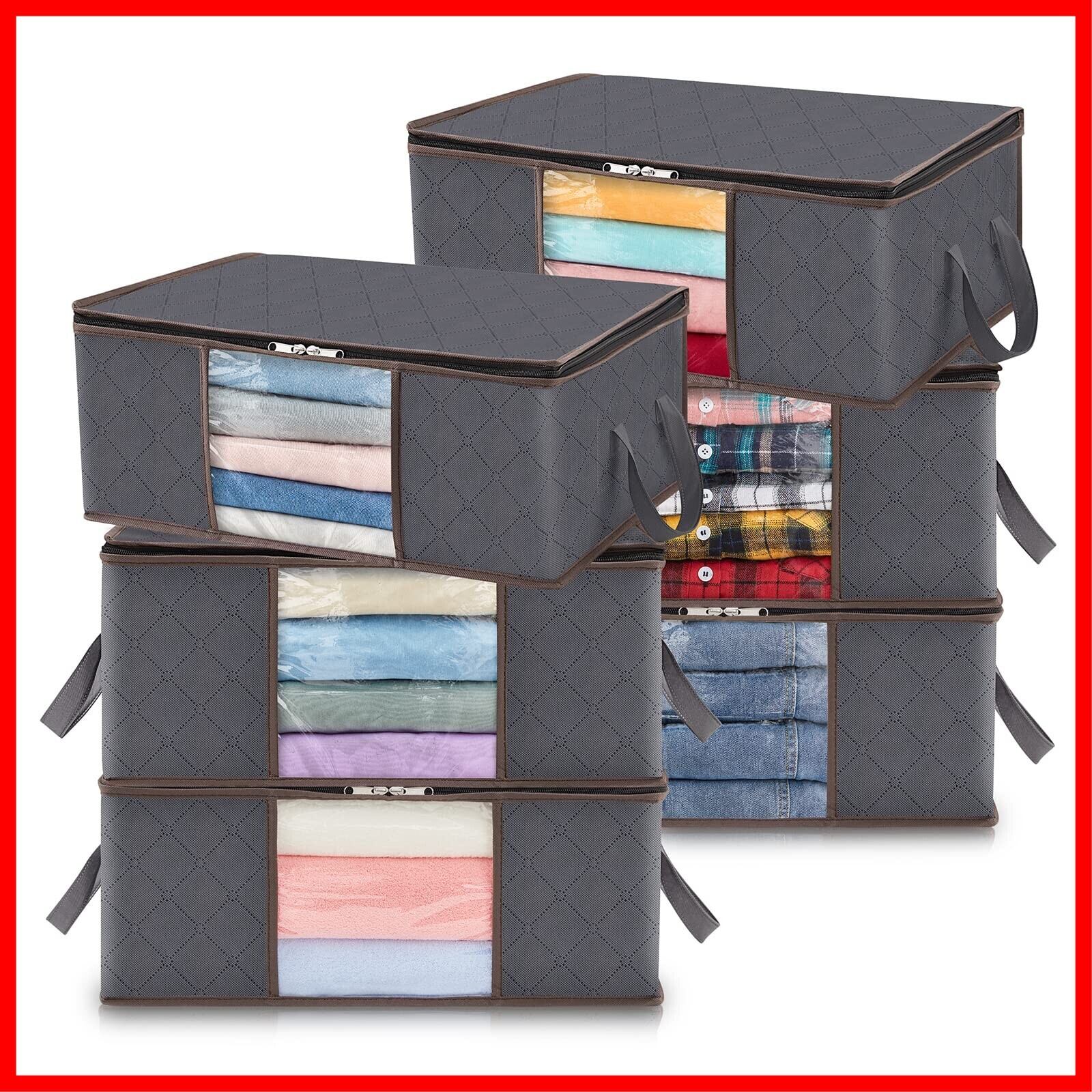 Lifewit 衣類収納 衣装ケース 毛布 服 収納 布団収納ケース 洋服収納 通気性の良い不織布押し入れ服収納ボックス 持ち手収納袋 透明窓付き收纳箱 大きく開く上部ファスナー 6個組 グレー