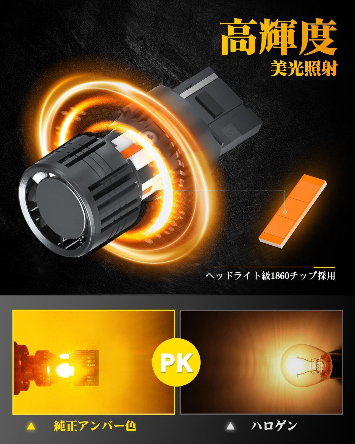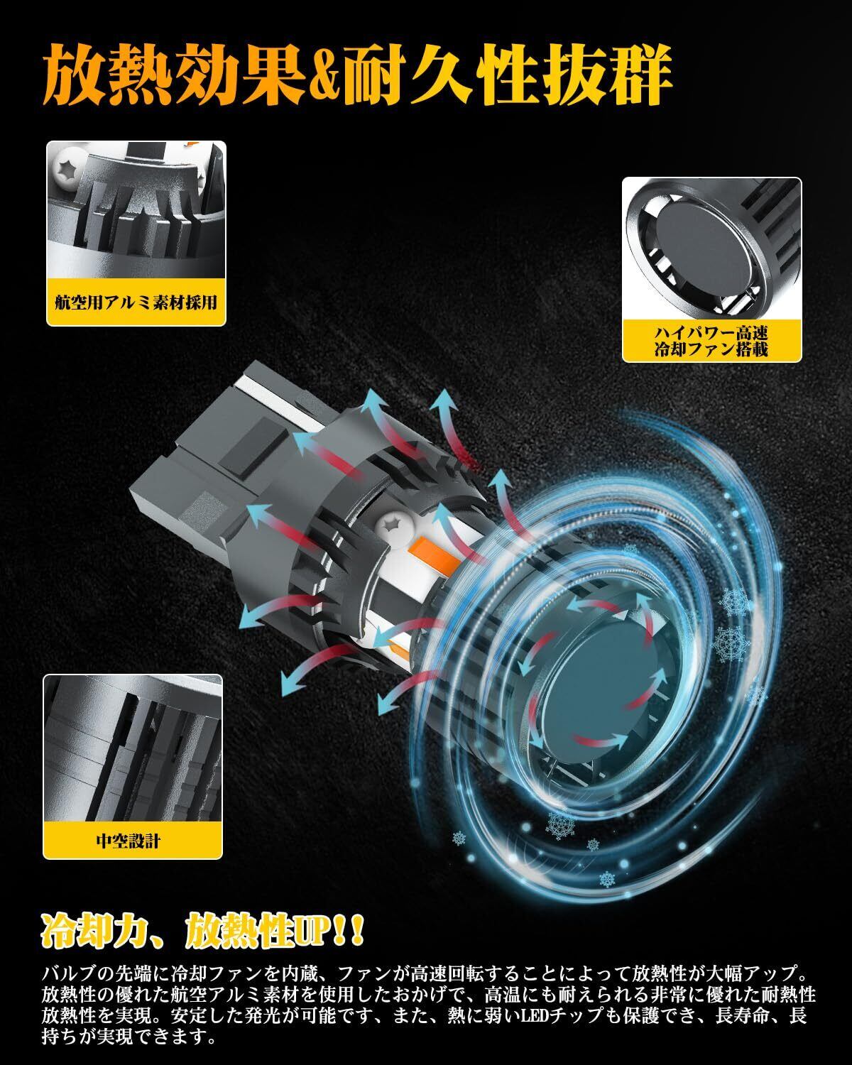 AUXITO t20 led ウインカー 兼 T20ピンチ部違い T20 LED ウィンカーバルブ 最新型 冷却ファン搭載 T20 シングル アンバー 2個セット 12V ハイフラ 防止抵抗 内蔵 無極性 車検対応 | hananoki