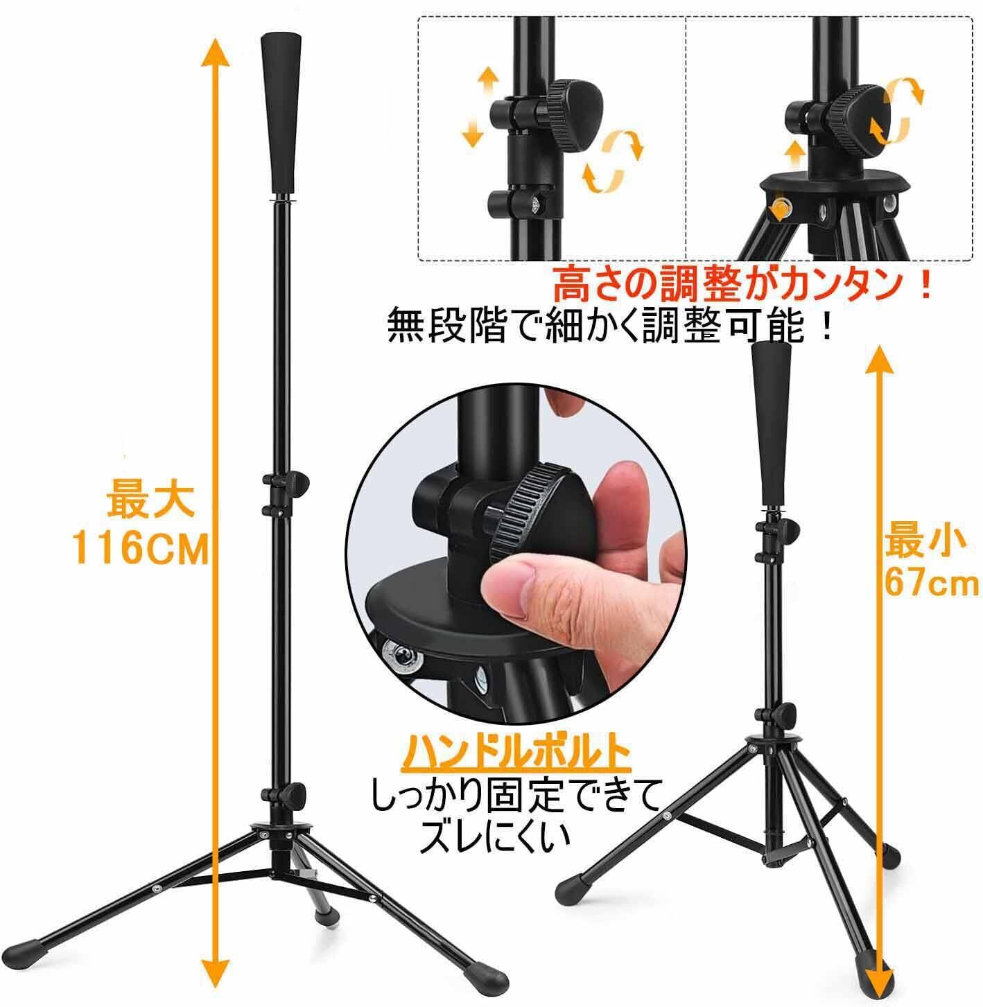 バッティングティー 野球 バッティング 練習スタンド ティースタンド 高さ67cm-116cm調整「汎用交換ラバー1本付属」 ボール置きティー ホルダー 少年 大人運動 練習 打撃 トレーニング 段階式 硬式/軟式球/ソフトボール 兼用レジャー ファミリースポーツBaseball & Softball Batting Tees…アウトドア 持ち運び 収納袋付き ブラック