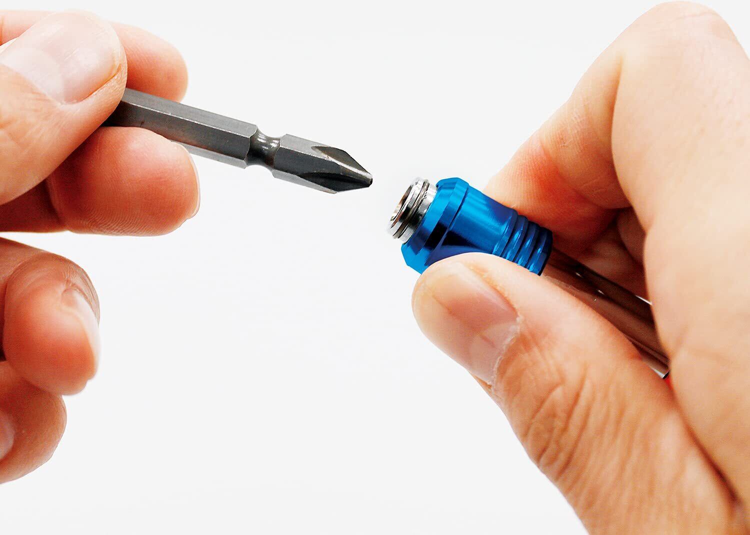 ビットを電気ドリルに装着したまま、ドリルや下穴錐を装着できる