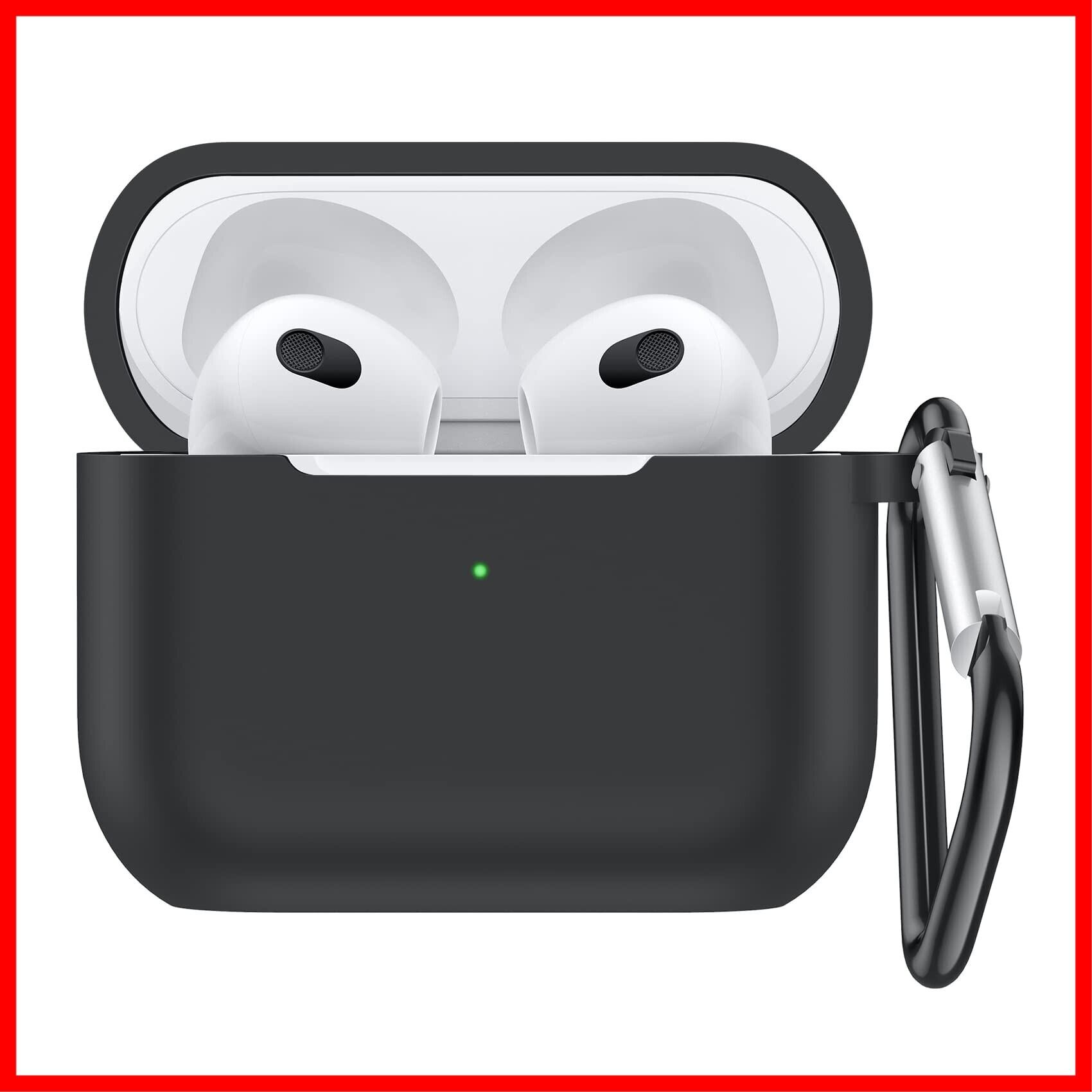 NIMASO AirPods 3 ケース 2021 第3世代 専用カバー エアーポッズ シリコン 保護 カラビナ付き ワイヤレス充電対応 (ブラック) NEC21J357
